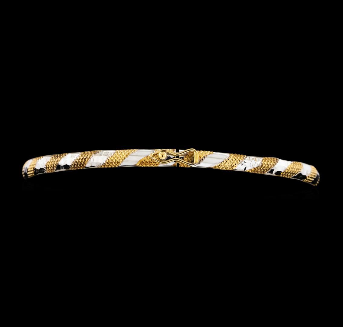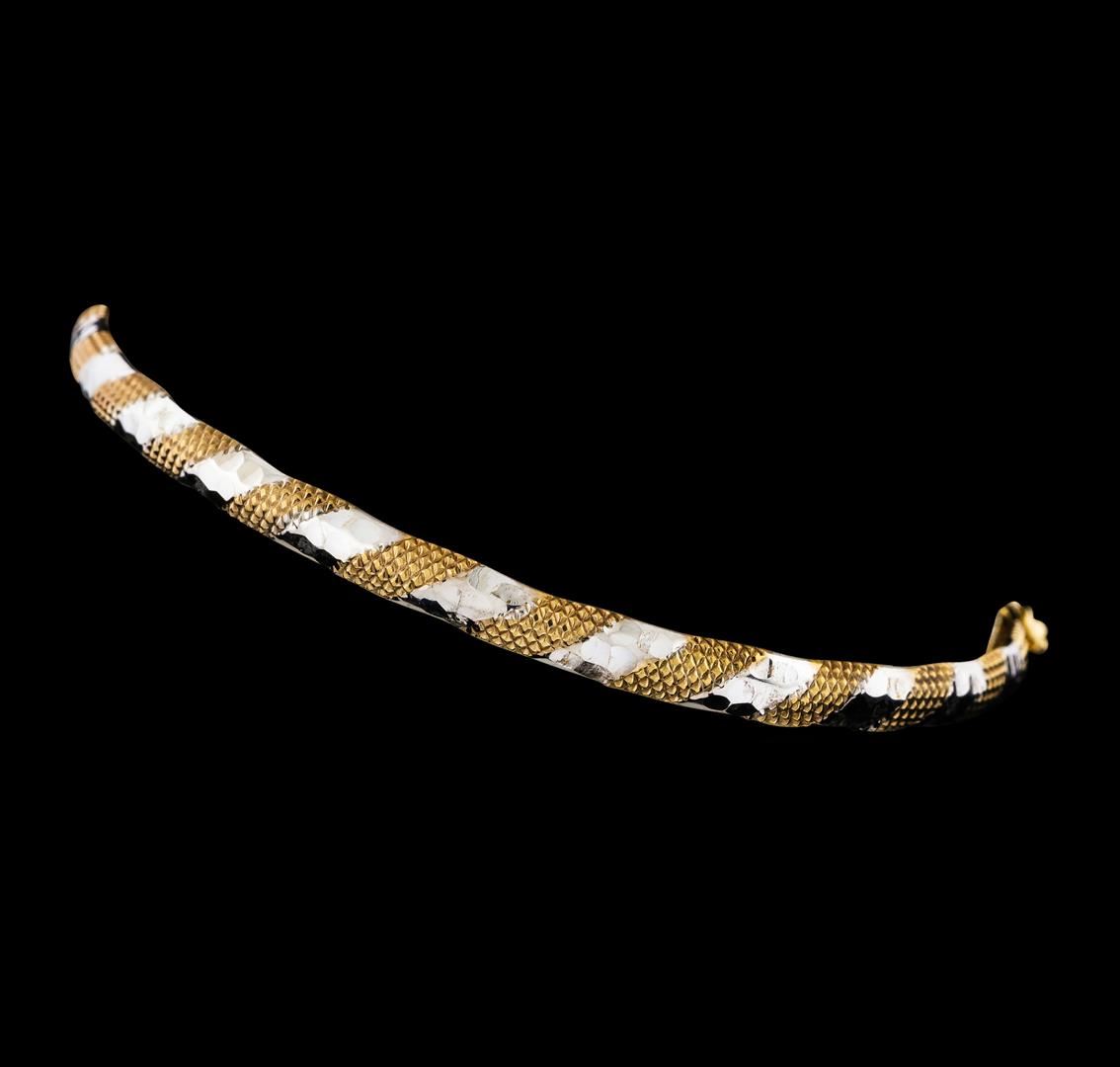 One 14KT Two-Tone Gold Bangle Bracelet with a total weight of 2.30 grams.