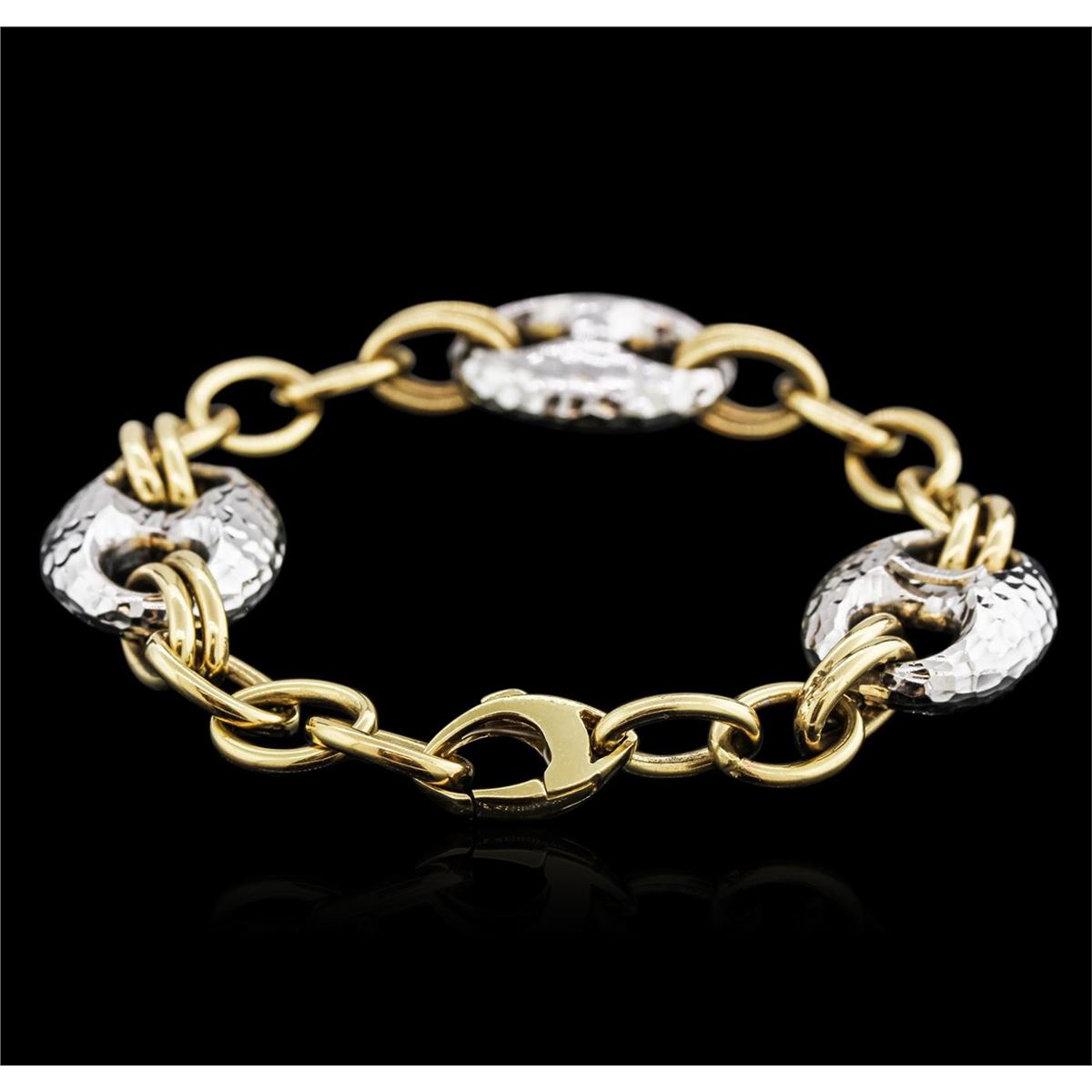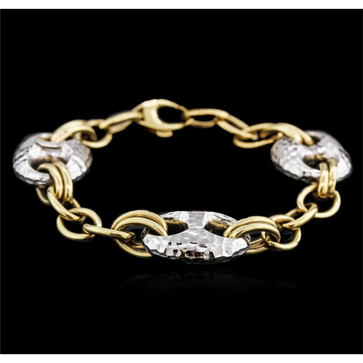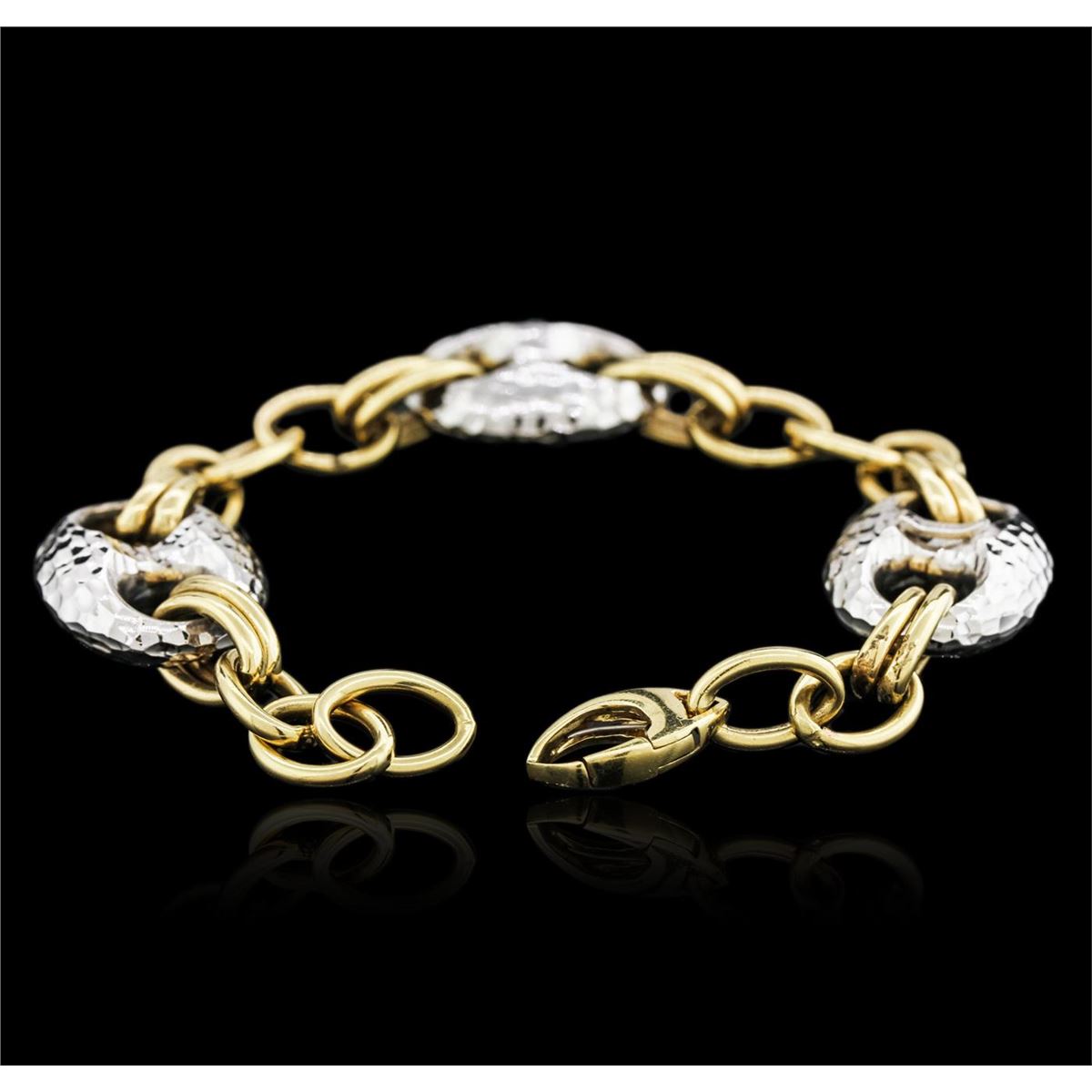 One fashion bracelet featuring: 14KT yellow and white gold weighing 18.50 grams.