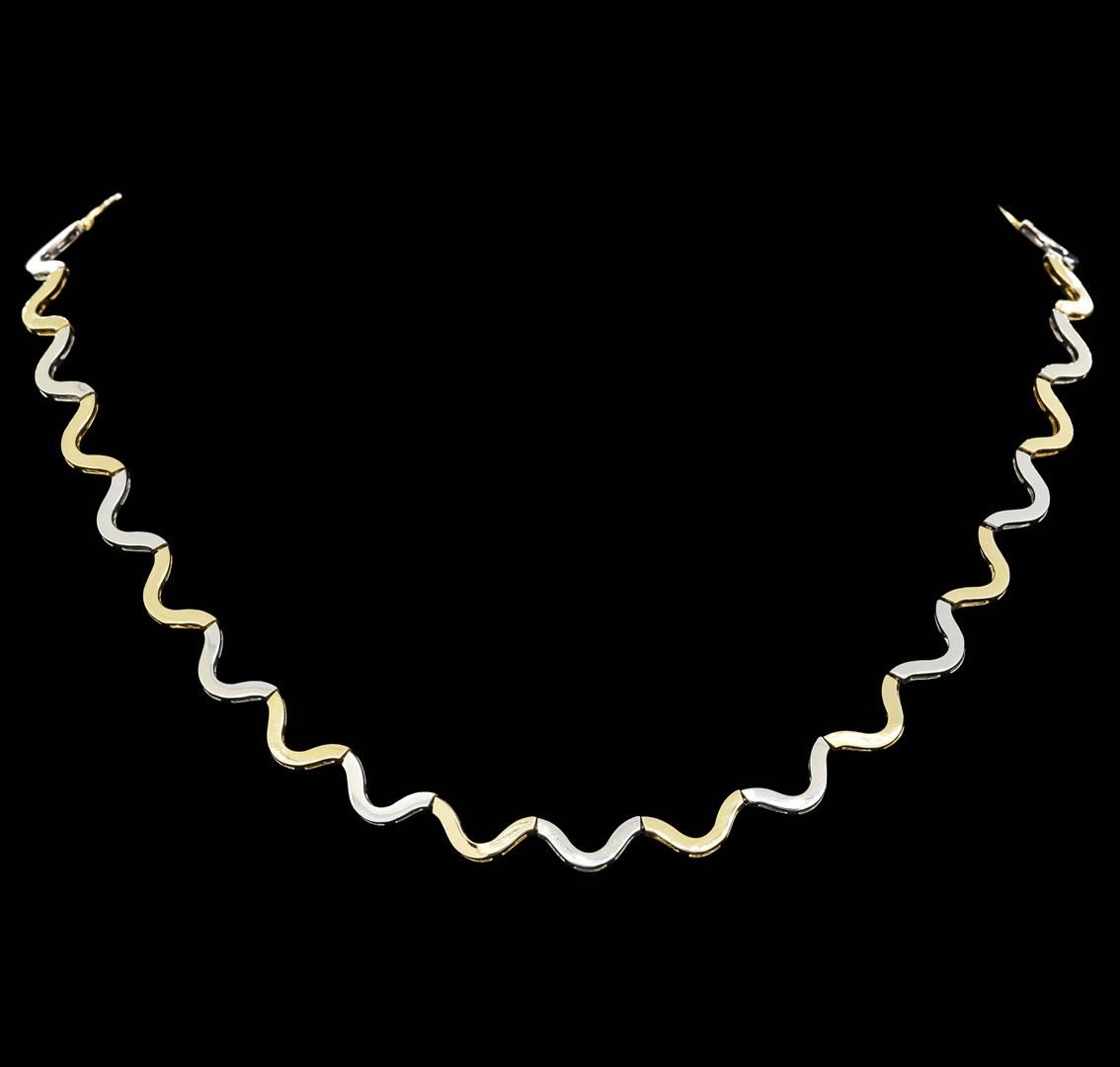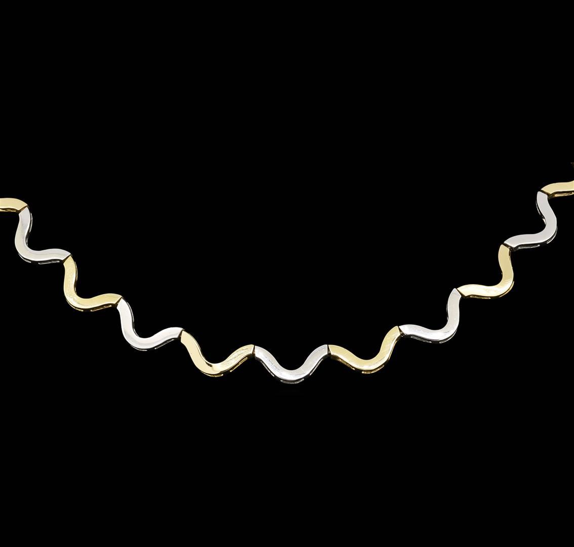 One Ladies necklace featuring: 14KT yellow and white gold weighing 12.0 grams.