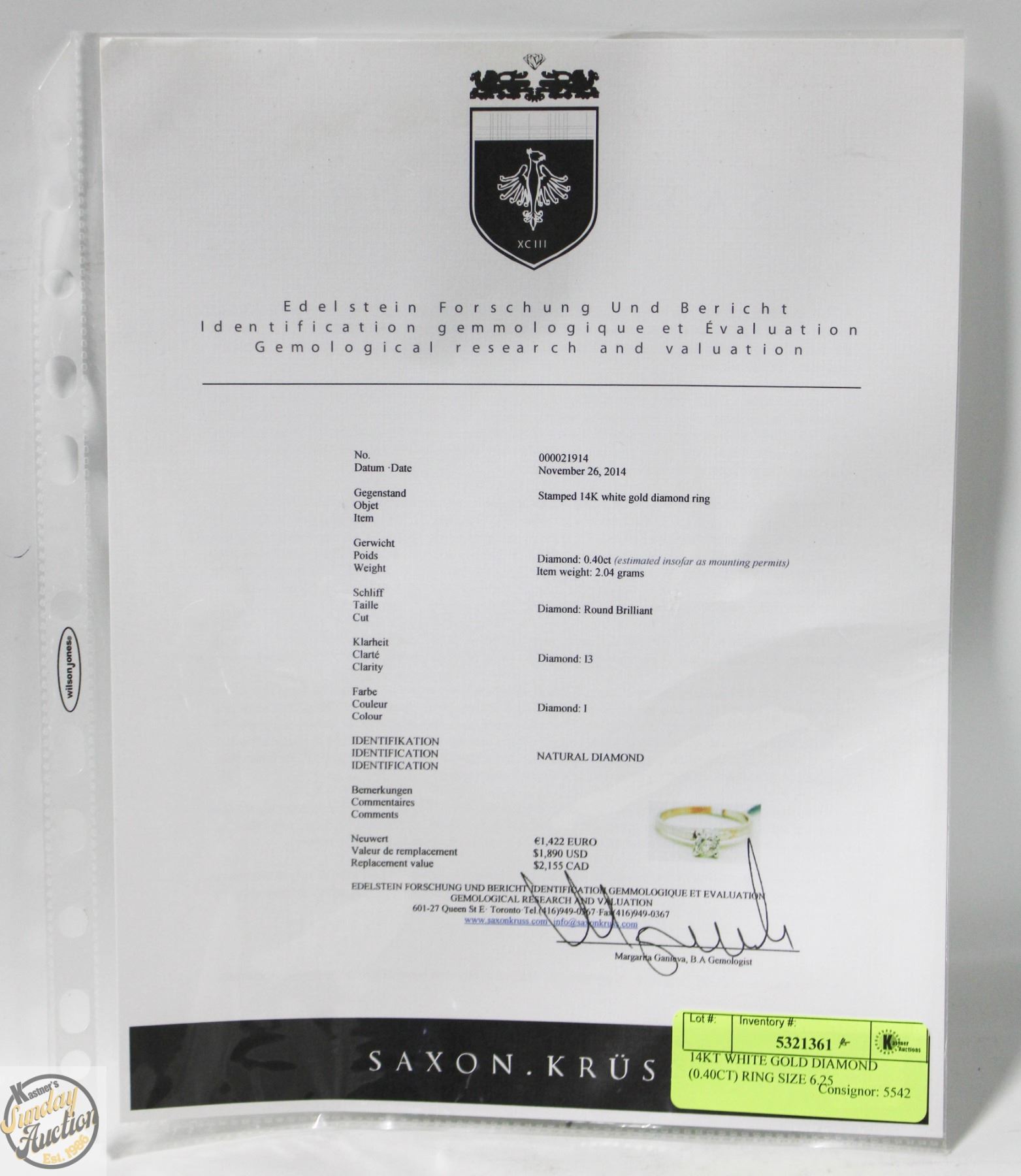 ROUND BRILLIANT DIAMOND I3 COLOR I, COMES WITH 2014 APPRAISAL FROM XC III SAXON KRUSS WITH SUGGESTED REPLACEMENT VALUE $2,155.00 **ALL ITEMS MUST BE REMOVED BY 5PM SATURDAY, MAY 17TH 2025. ALL REMAINING ITEMS WILL BE SUBJECT TO A $6.00 PER DAY STORAGE CHARGE. ANY ITEMS REMAINING AFTER MONDAY, JUNE 2ND 2025 WILL BE CONSIDERED FORFEITED. NO REFUNDS WILL BE ISSUED FOR FORFEITED ITEMS. TO SCHEDULE A PICK UP APPOINTMENT CLICK HERE