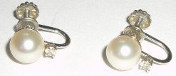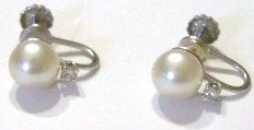 14KT WHITE GOLD PEARL & DIAMOND EARRINGS. STAMPED *14KT*!! TOTAL WEIGHT IS 2.40 GRAMS!! ***Coin, Currency & All Items Listed in this auction - Grades, Conditions and Values are not Safe Deposit Coins LLC Responsibilty. Grades, Condition and Values are determined by Consigner(s) & Buyers ONLY***