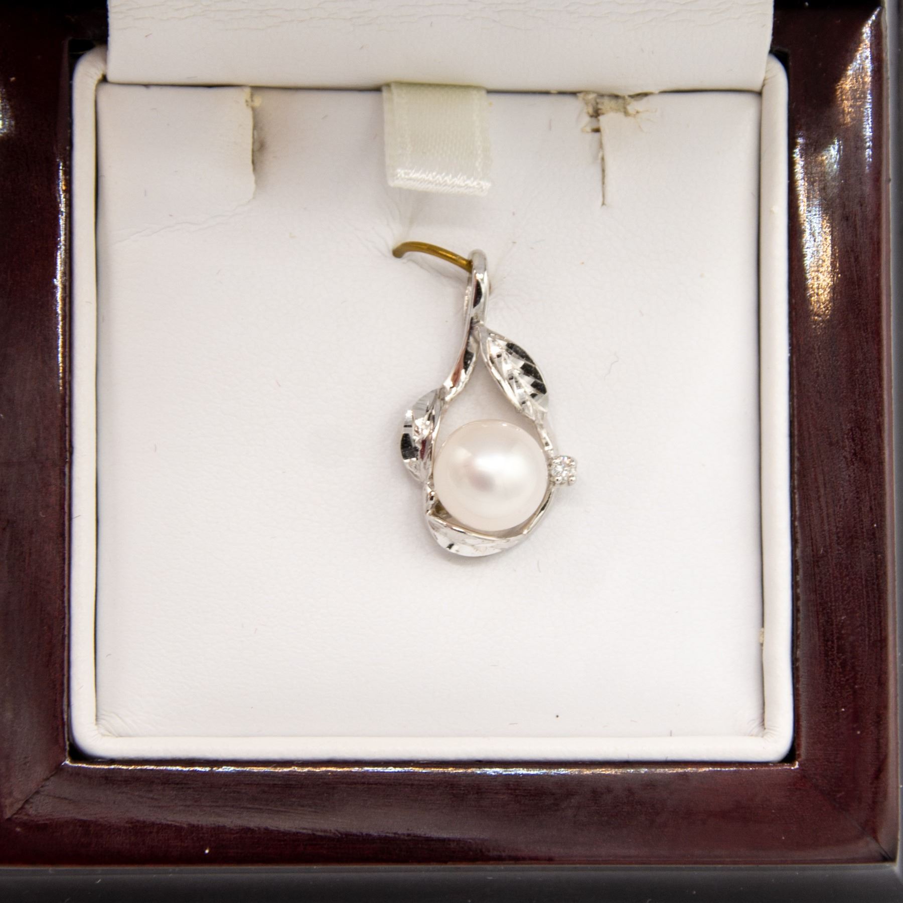 LEAVES, A GENUINE PEARL AND A DIAMOND (7/8"-LONG)**ALL ITEMS MUST BE REMOVED BY 5PM MONDAY, OCTOBER 17TH, 2022. ALL REMAINING ITEMS WILL BE SUBJECT TO A $6.00 PER DAY STORAGE CHARGE. ANY ITEMS REMAINING AFTER MONDAY, OCTOBER 29, 2022 WILL BE CONSIDERED FORFEITED. NO REFUNDS WILL BE ISSUED FOR FORFEITED ITEMS. TO SCHEDULE A PICK UP APPOINTMENT CLICK HERE
