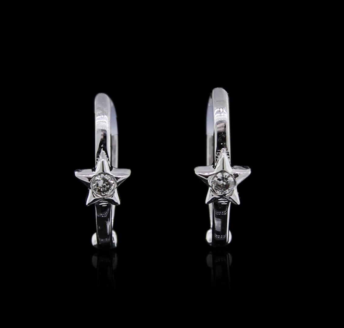 One pair earrings featuring: 14KT white gold weighing 1.20 grams containing diamonds with a total weight of 0.03ct.