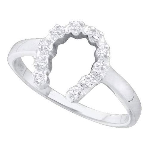 14KT White Gold 0.05CT DIAMOND HORSE SHOE RING **|**|** Source: 43624 ; Metal: Gold ; Metal Purity: 14KT ; Ring Size: 7 ; Main Stone: I1-I2 ; Total Carat: 0.05 ; Main Stone Color: H-I Color ; All diamonds are natural but colored diamonds are enhanced.