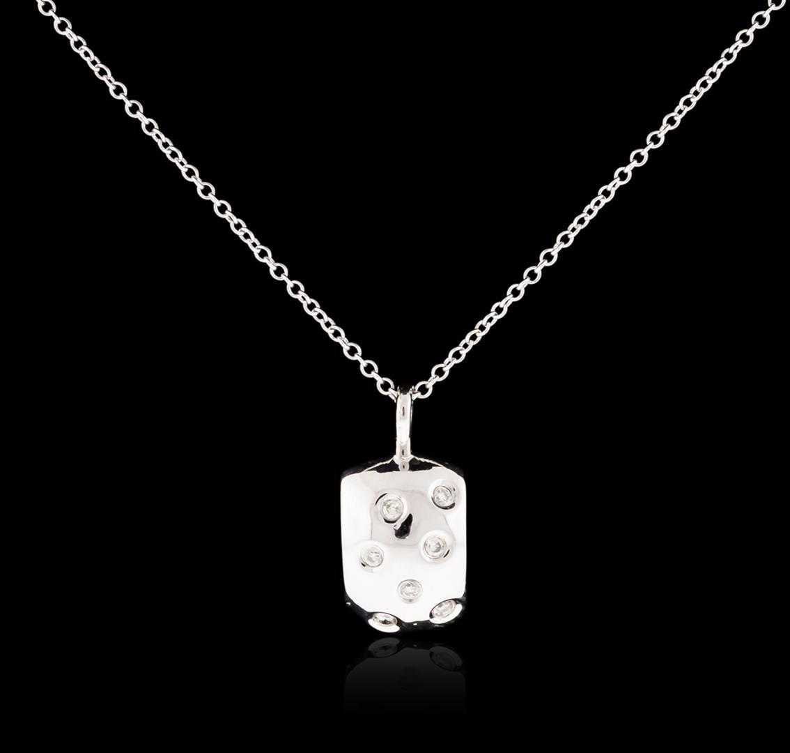 One pendant with chain featuring: 14KT white gold weighing 2.20 grams containing round cut diamonds weighing a total of 0.08ct.