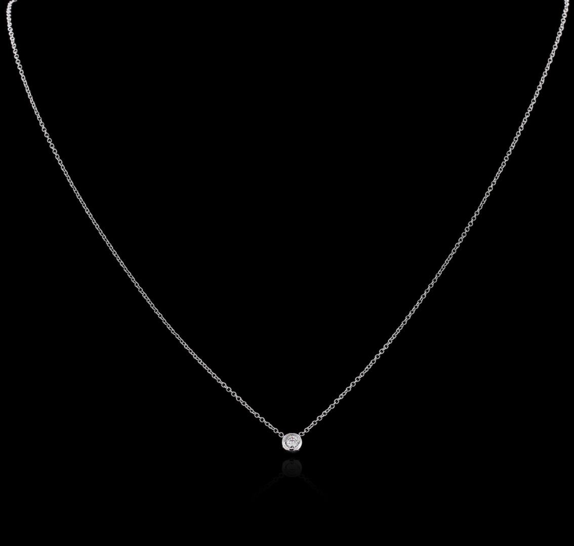 One solitaire necklace featuring: 14KT white gold weighing 1.74 grams containing one diamond with a total weight of 0.09ct.