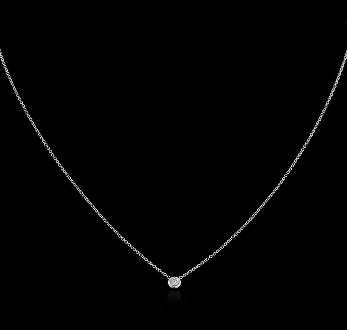 One solitaire necklace featuring: 14KT white gold weighing 1.61 grams containing one diamond with a total weight of 0.09ct.