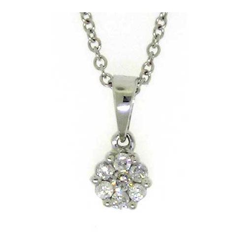 14KT White Gold 0.10CTW ROUND DIAMOND LADIES FLOWR PEND **|**|** Source: 9302 ; Metal: Gold ; Metal Purity: 14KT ; Ring Size: ; Main Stone: I1-I2 ; Total Carat: 0.1 ; Main Stone Color: H-I Color ; All diamonds are natural but colored diamonds are enhanced.