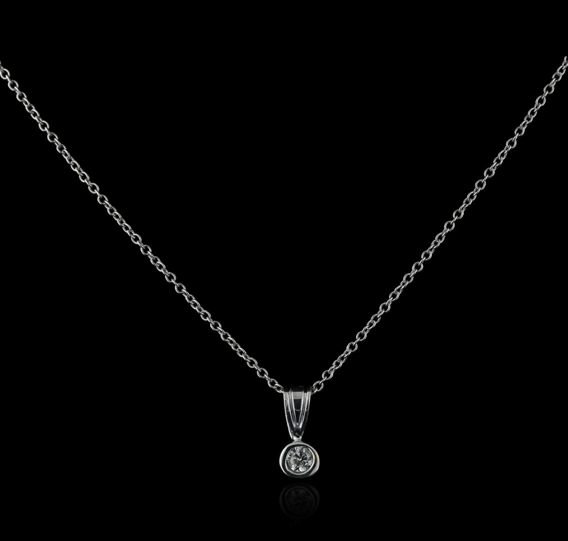 One solitaire pendant with chain featuring: 14KT white gold weighing 1.52 grams containing one diamond with a total weight of 0.10ct.