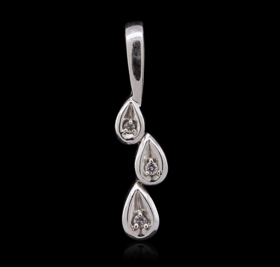 One pendant with chain featuring: 14KT white gold weighing 3.10 grams containing three round diamonds with a total weight of 0.10ct.