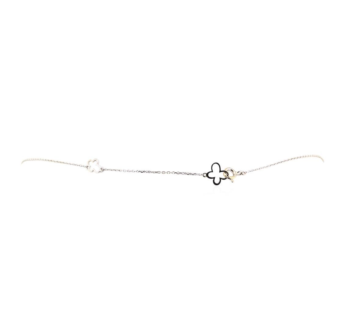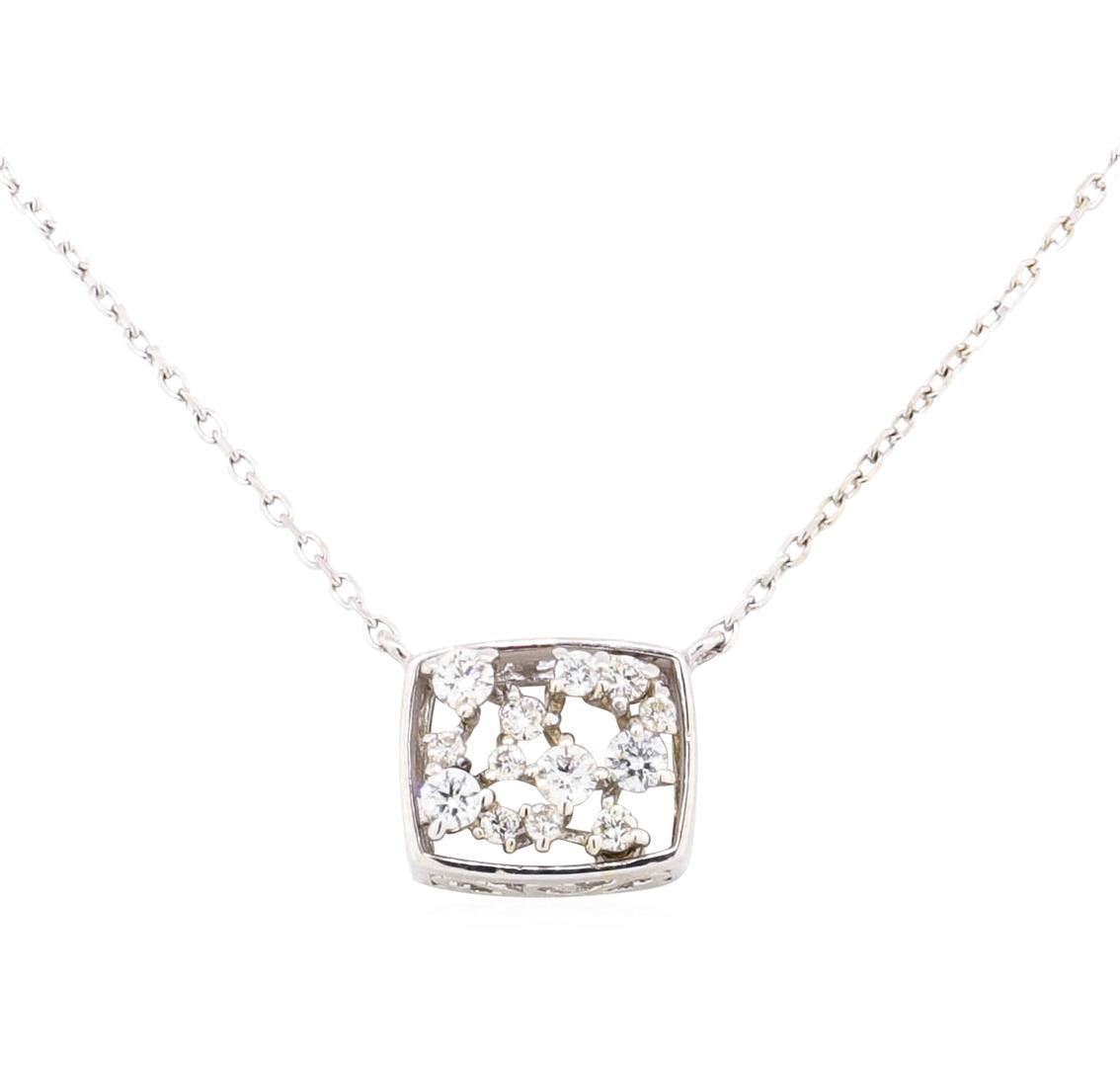 One necklace featuring: 14KT white gold weighing 2.5 grams containing diamonds weighing 0.15ctw. The necklace has an attached chain that can be worn between sixteen and eighteen inches in length.
