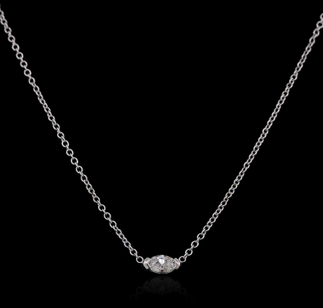 One solitaire necklace featuring: 14KT white gold weighing 1.17 grams containing one diamond with a total weight of 0.15ct.
