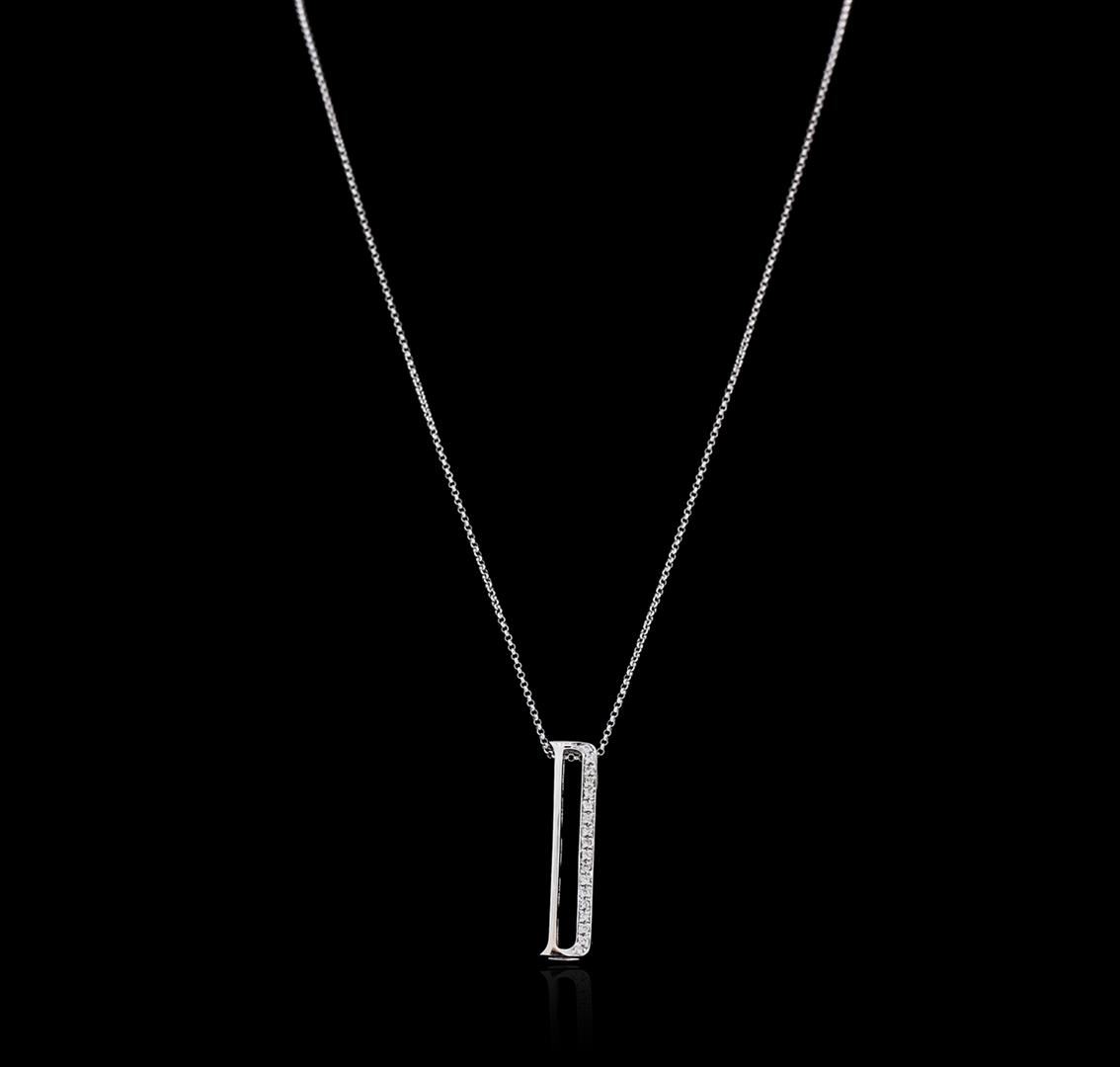 One pendant with chain resembling the letter D featuring: 14KT white gold weighing 4.30 grams containing diamonds with a total weight of 0.16ct.
