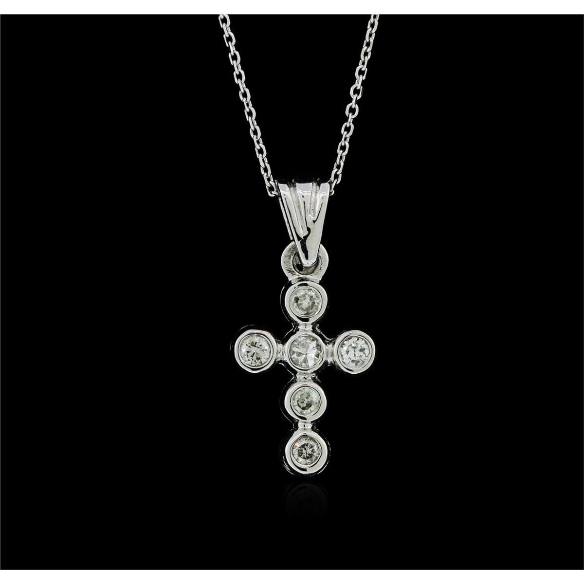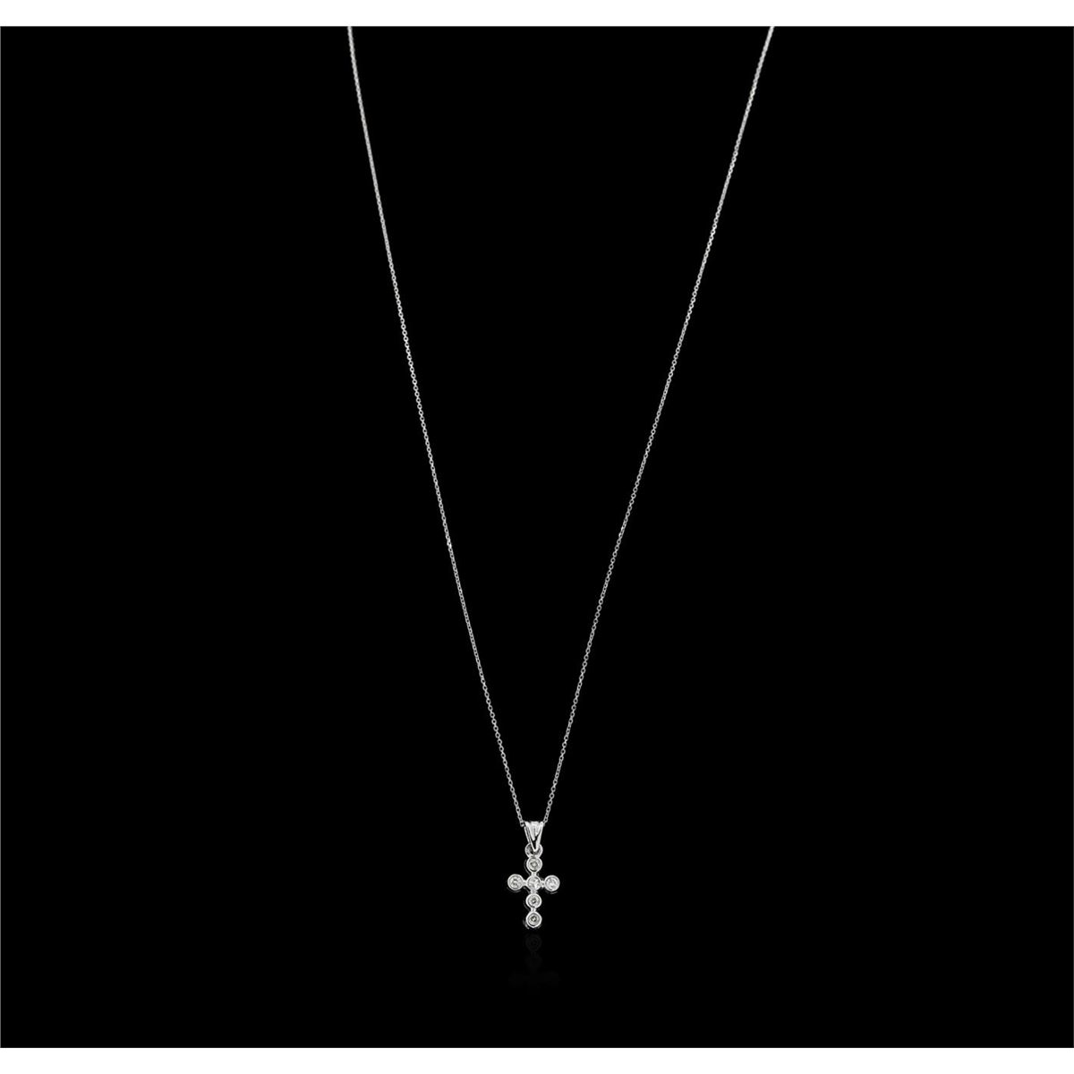 One cross pendant with chain featuring: 14KT white gold weighing 1.60 grams containing bezel set round diamonds with a total weight of 0.16ct.