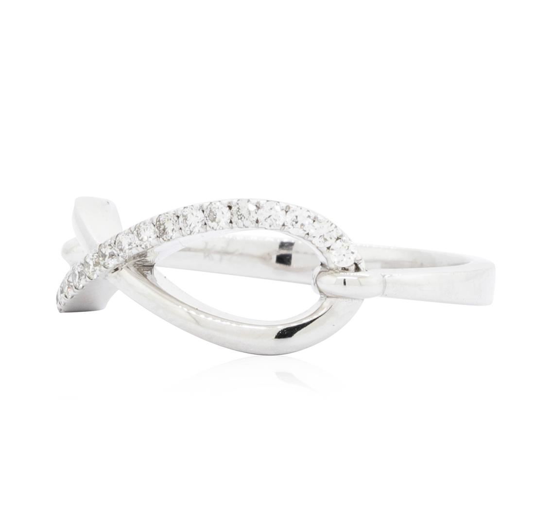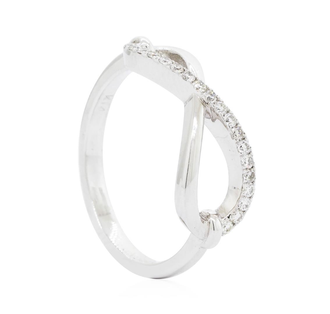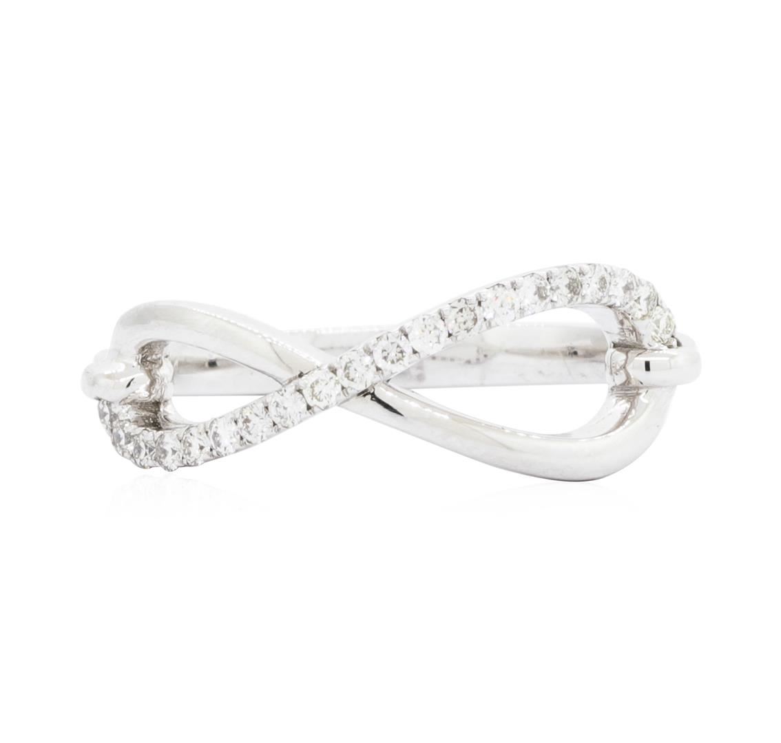 One ring with an infinity motif featuring: 14KT white gold weighing 2.8 grams containing diamonds weighing 0.21ctw. The ring is a size 6.5.