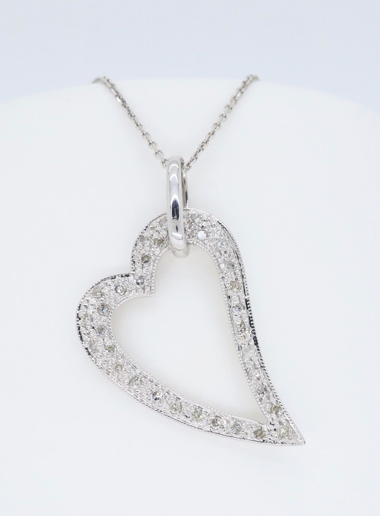 One 14KT White Gold 0.23ctw Diamond Pendant with Chain. (32) Single cut Diamonds with a total weight of 0.23cts with a color of G-J and clarity of I-1 to I-2. Total weight of this pendant is 2.5 grams. Total length of this chain is 18 inches.
