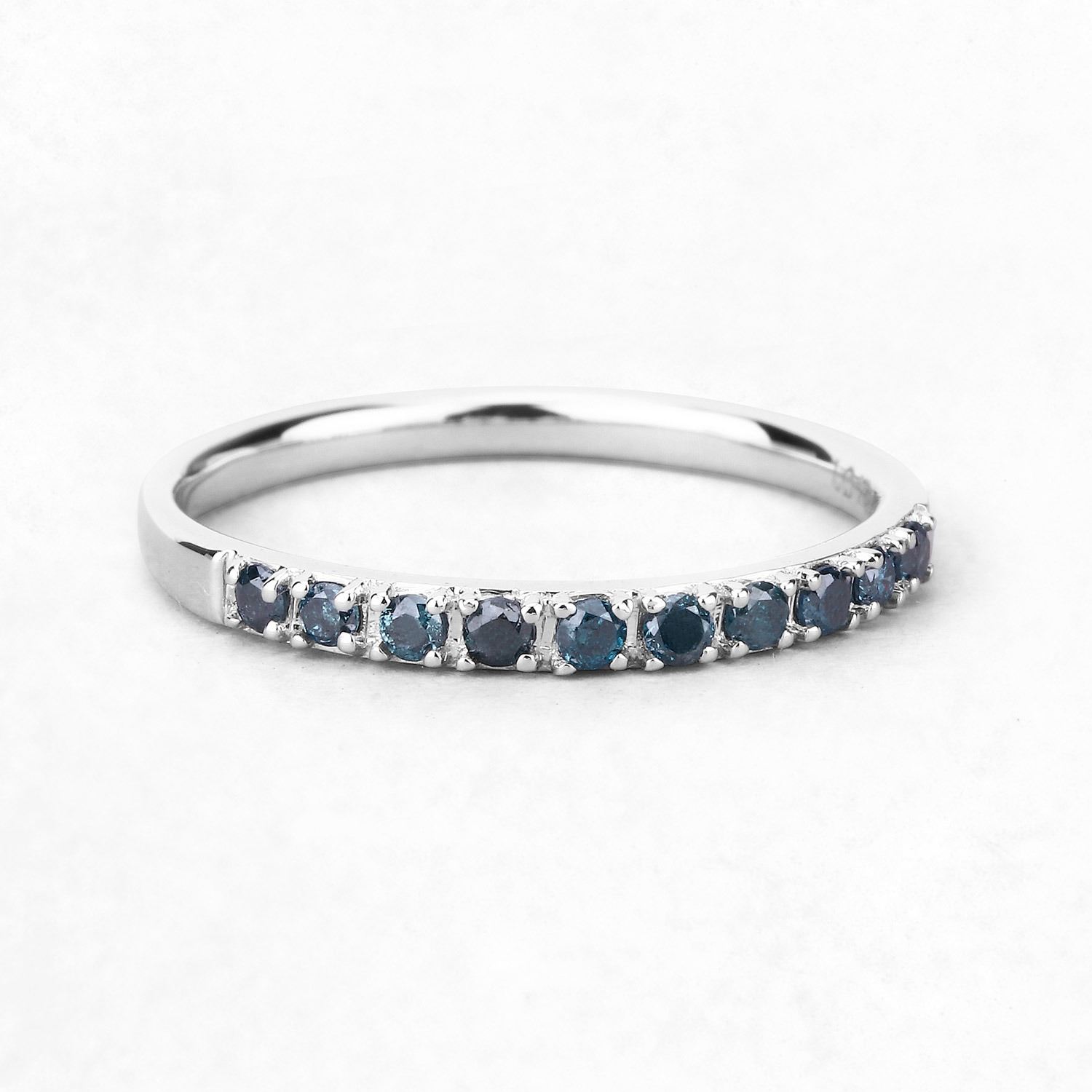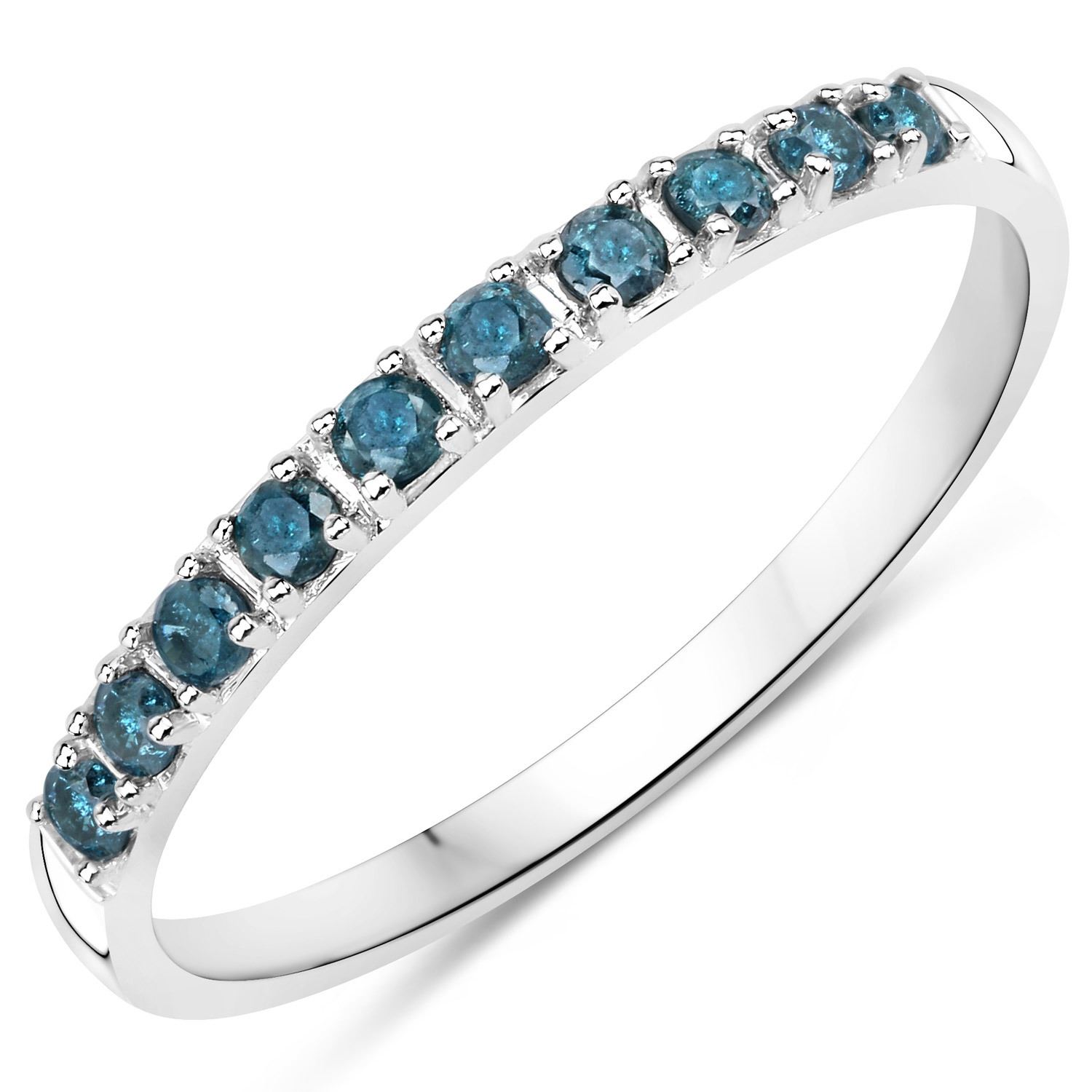 Blue Diamond Round/1.60-1.80mm - 10/0.24 ctw Prong Setting Natural Irradiated E I1-I2. Ring size 7. Total weight of 1.67 grams.