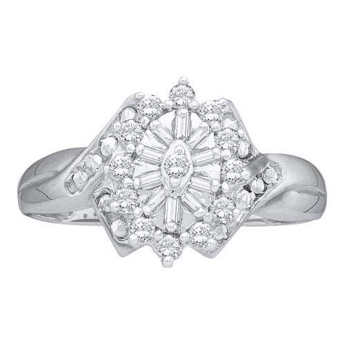 14KT White Gold 0.25CTW ROUND BAGGUETTE DIAMOND LADIES **|**|** Source: 22990 ; Metal: Gold ; Metal Purity: 14KT ; Ring Size: 7 ; Main Stone: I1-I2 ; Total Carat: 0.25 ; Main Stone Color: H-I Color ; All diamonds are natural but colored diamonds are enhanced.