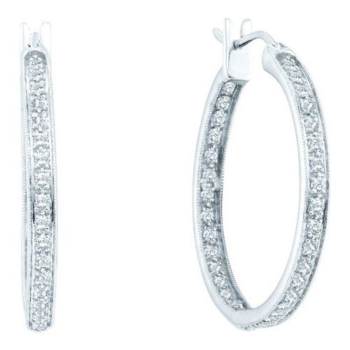 14KT White Gold 0.25CTW ROUND DIAMOND FASHION HOOPS **|**|** Source: 51289 ; Metal: Gold ; Metal Purity: 14KT ; Ring Size: ; Main Stone: I1-I2 ; Total Carat: 0.25 ; Main Stone Color: H-I Color ; All diamonds are natural but colored diamonds are enhanced.