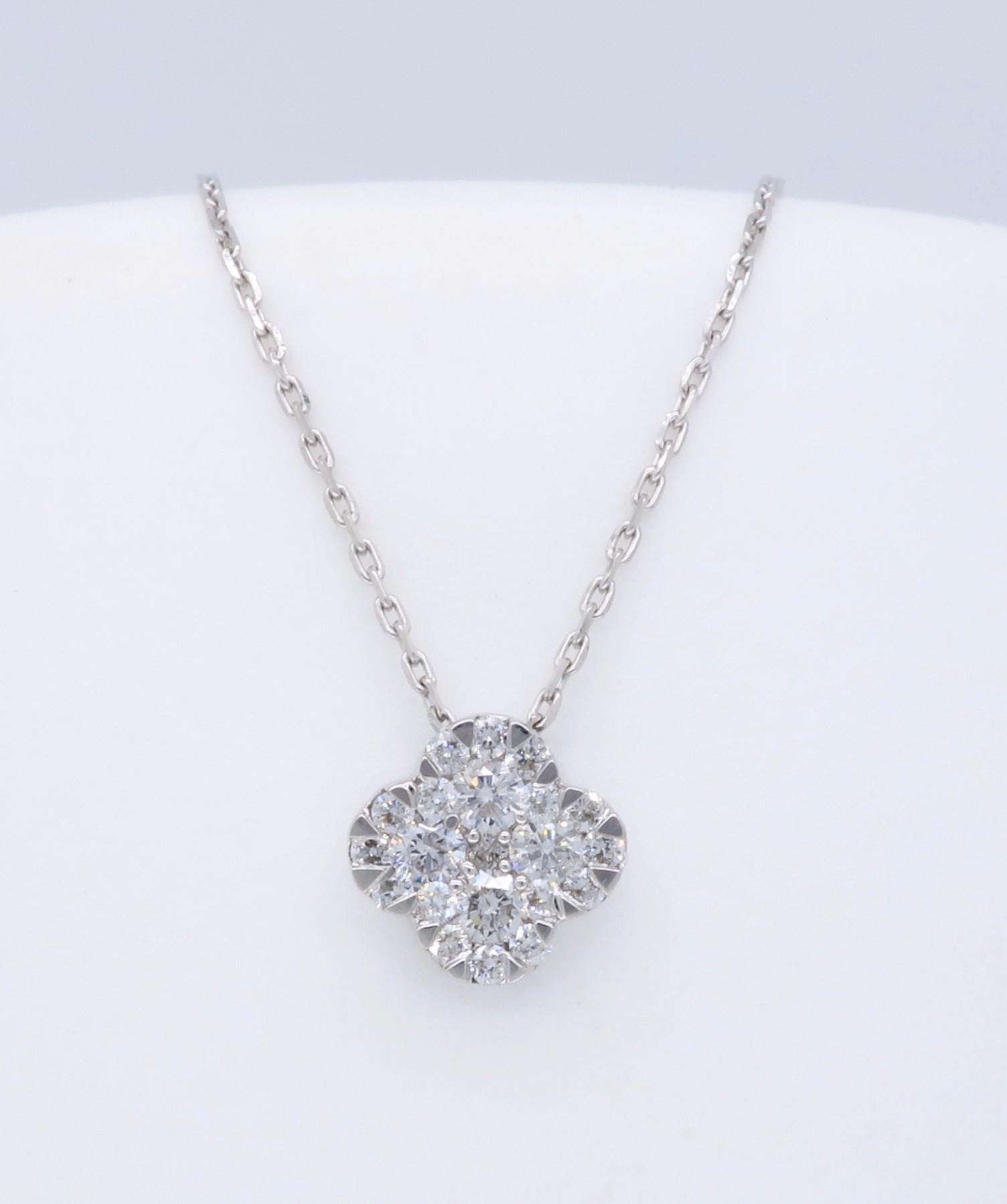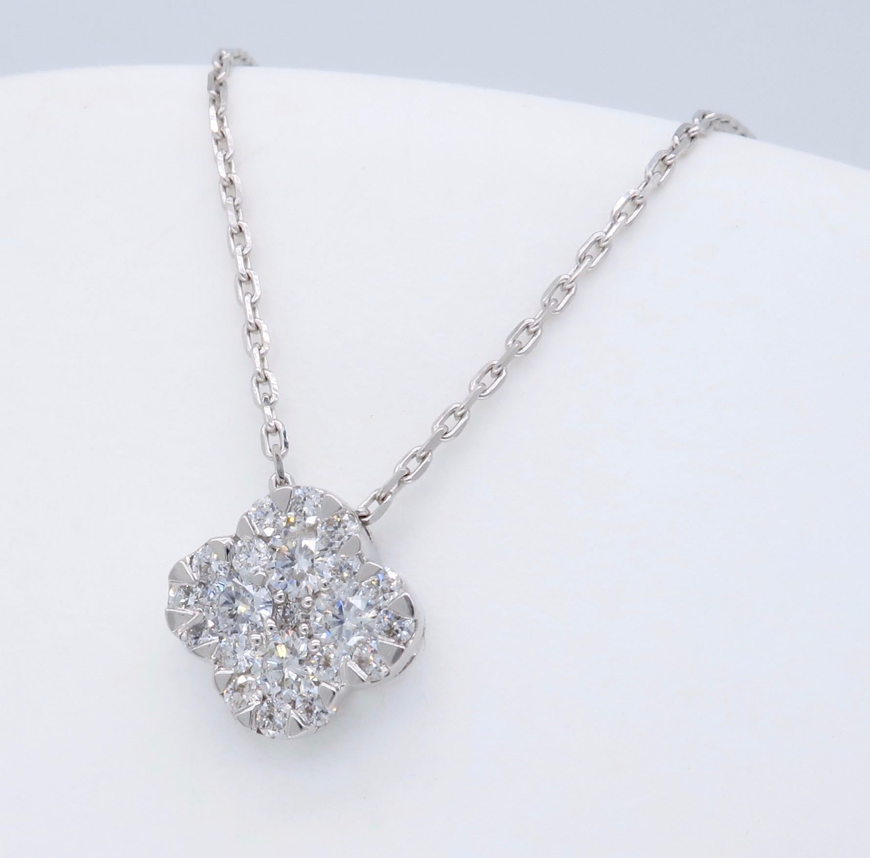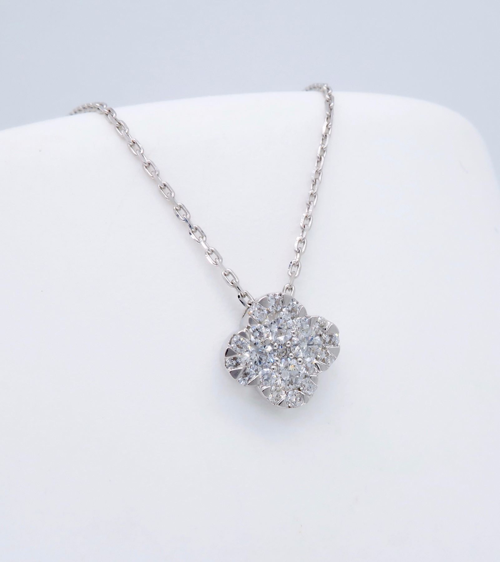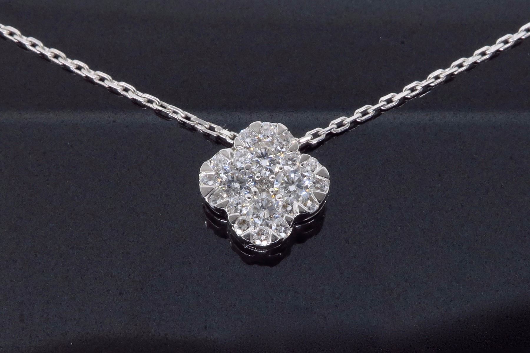 One 14KT White Gold 0.25ctw Diamond Pendant with Chain. Round Diamonds with a total weight of 0.25cts with a color of G and clarity of SI-2. Total weight of this pendant with chain is 1.66 grams.