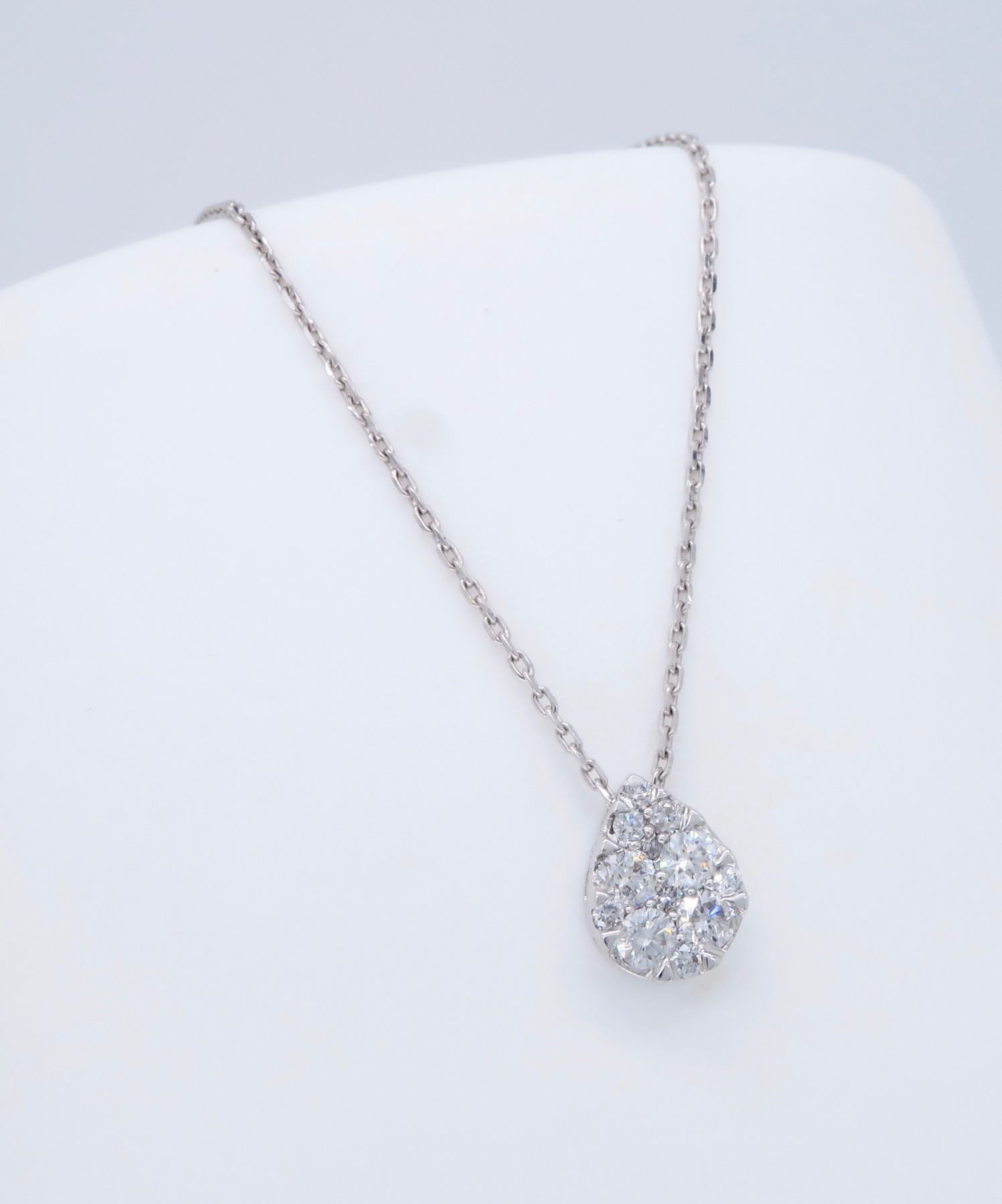 One 14KT White Gold 0.25ctw Diamond Pendant with Chain. Round Diamonds with a total weight of 0.25cts with a color of G and clarity of SI-2. Total weight of this pendant with chain is 1.66 grams. Total length of this chain is 17 inches.