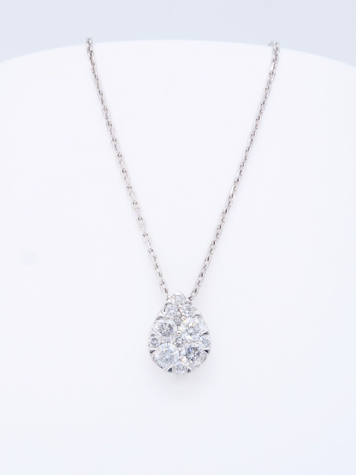 One 14KT White Gold 0.25ctw Diamond Pendant with Chain. Round Diamonds with a total weight of 0.25cts with a color of G and clarity of SI-2. Total weight of this pendant with chain is 1.66 grams. Total length of this chain is 17 inches.