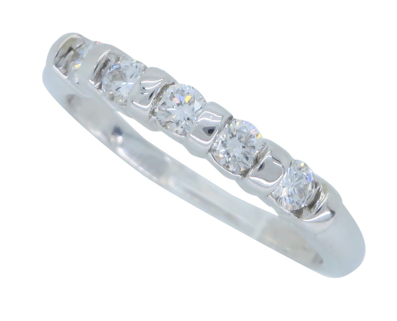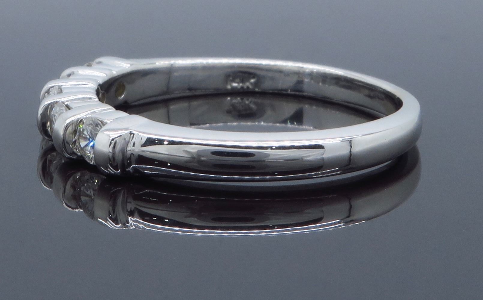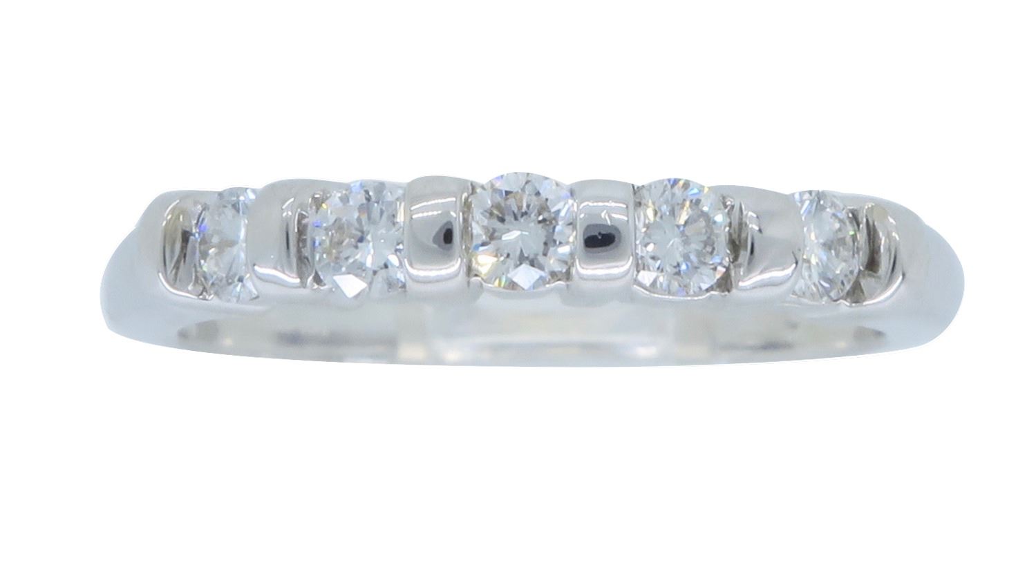 One 14KT White Gold 0.25ctw Diamond Ring. Round Diamonds with a total weight of 0.25cts with a color of G-I and clarity of I-1 to I-2. Total weight of this ring is 2.6 grams. Ring size is 5.25.