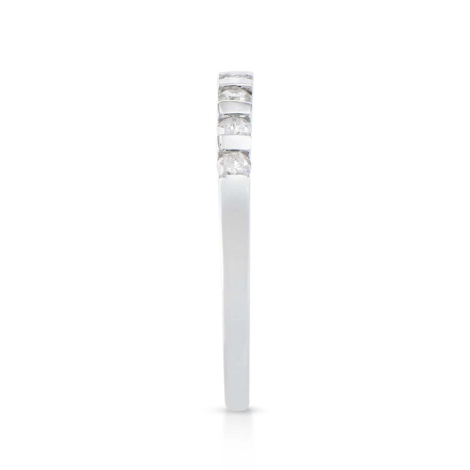 (7) round Diamonds with a total weight of 0.25cts with a color of H-I and clarity of I1-I2. Total weight of this ring is 1.7 grams. Ring size is 7.5.