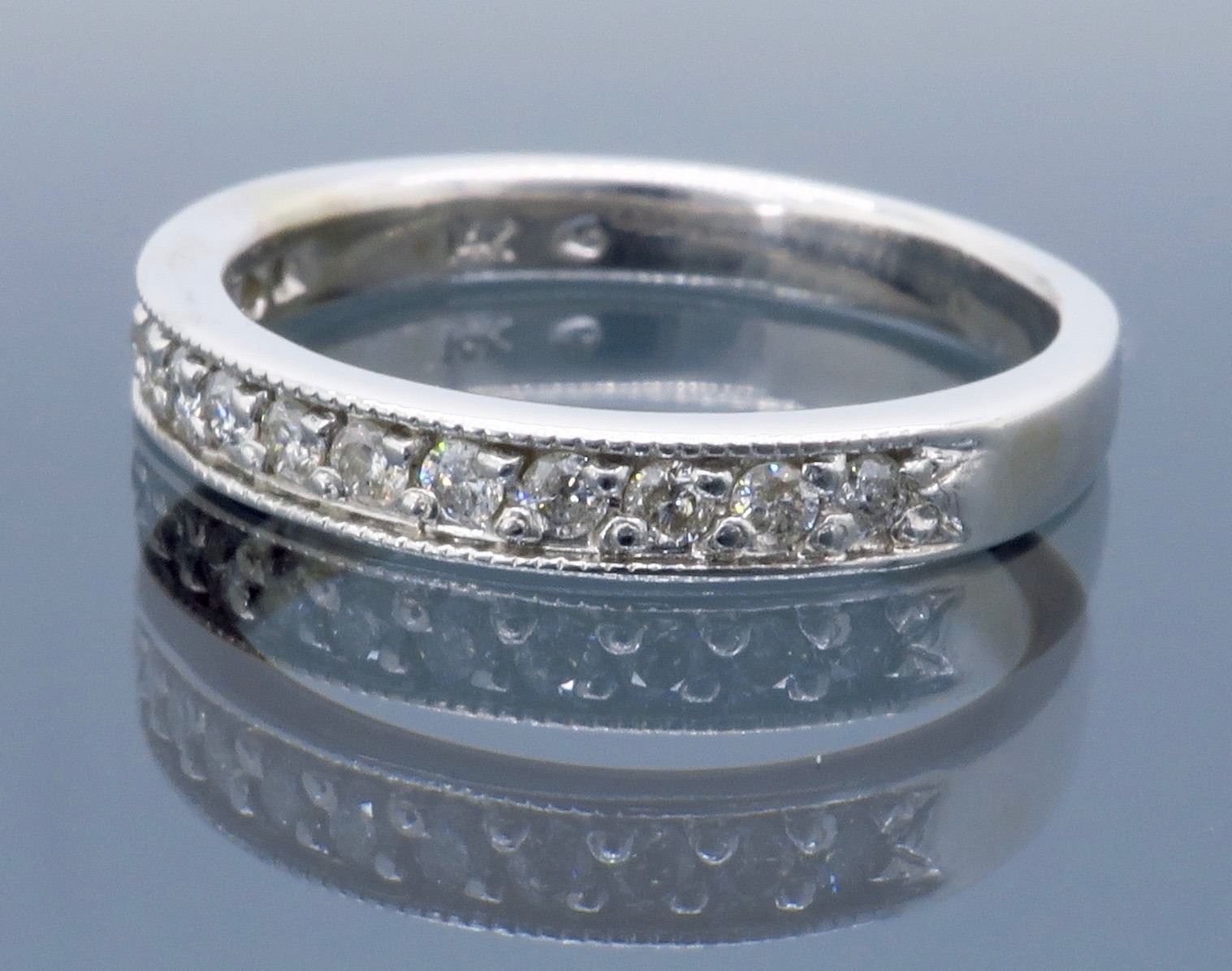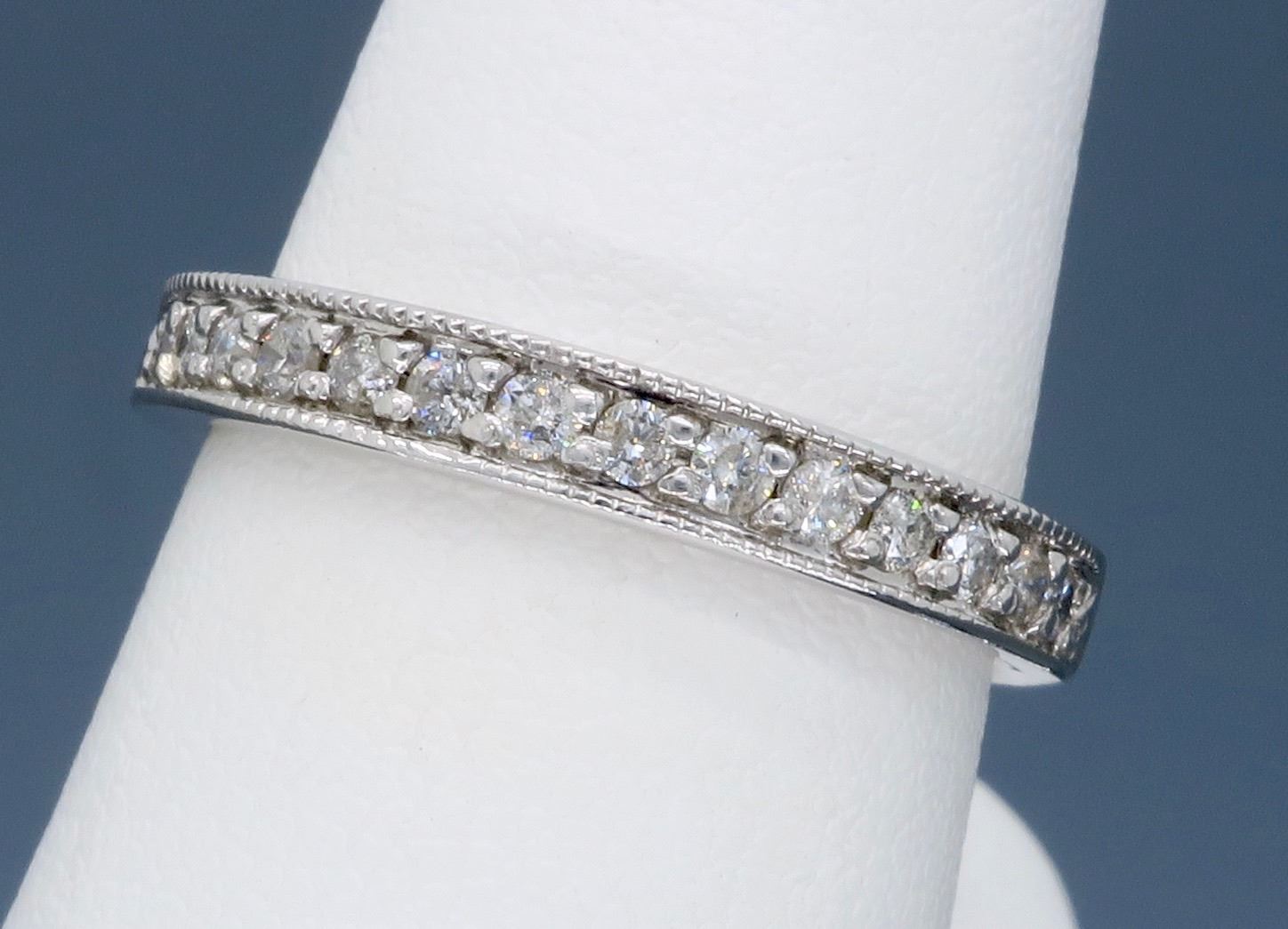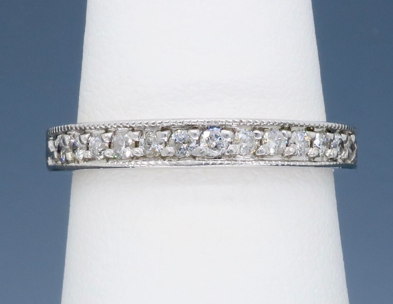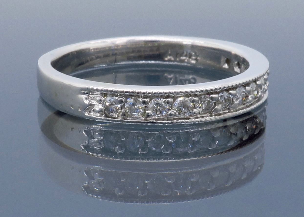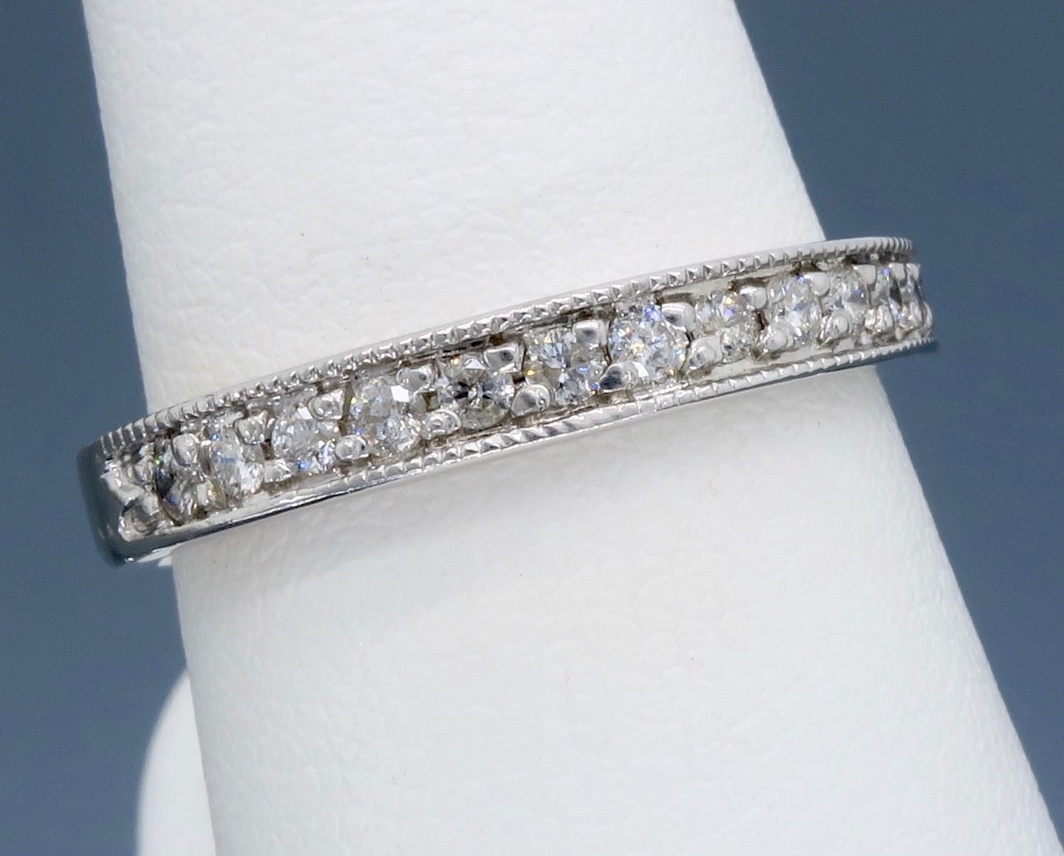 One 14KT White Gold 0.25ctw Diamond Wedding Band. 0.25cts of Diamonds with a color of G-I and clarity of SI-2 to I-1. Total weight of 2.7 grams.