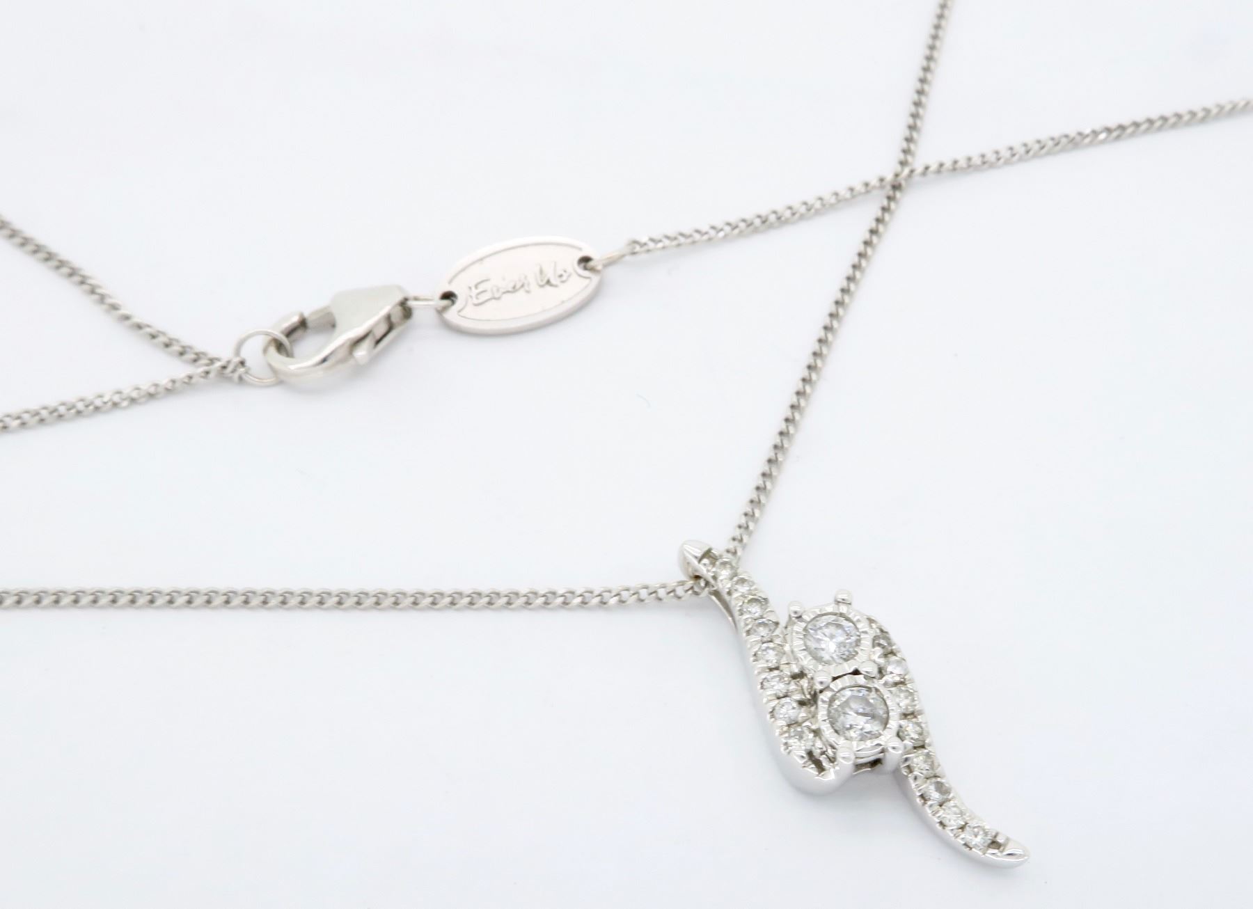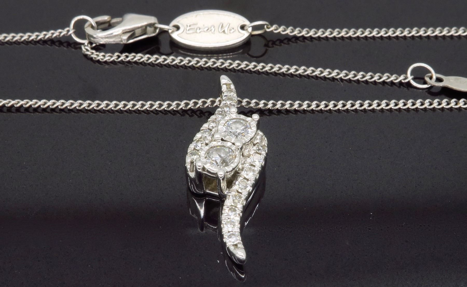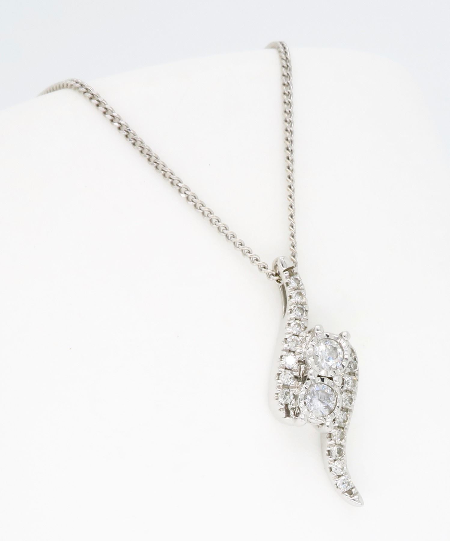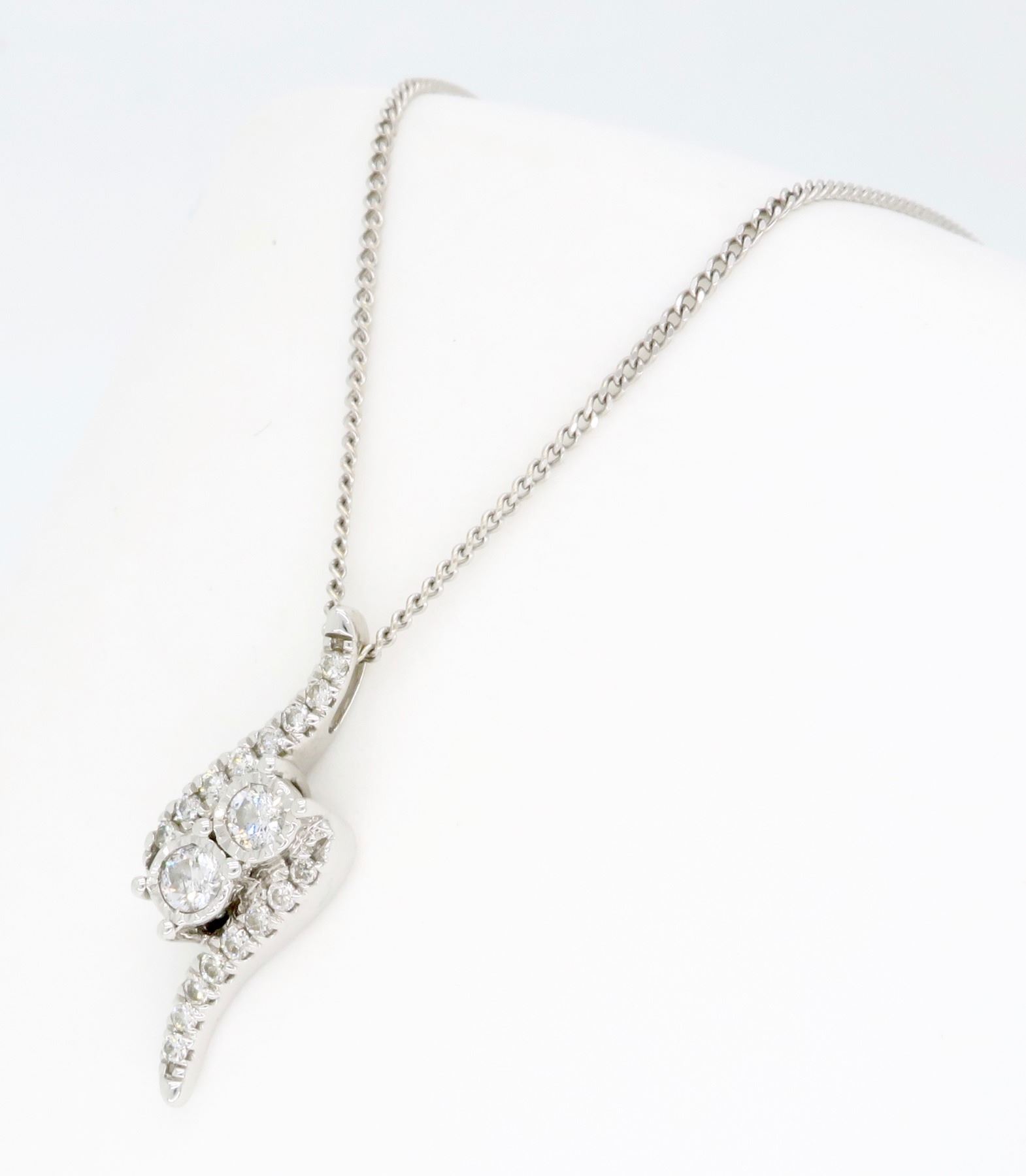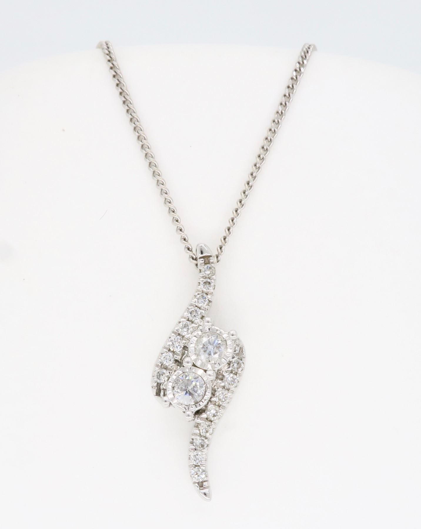 One 14KT White Gold 0.25ctw Diamonds Pendant with Chain. 0.25cts of Diamonds with a color of G-I and clarity of I-1. Total weight of this pendant with chain is 4.1 grams. Total length of this chain is adjustable form 17 inches to 19 inches.