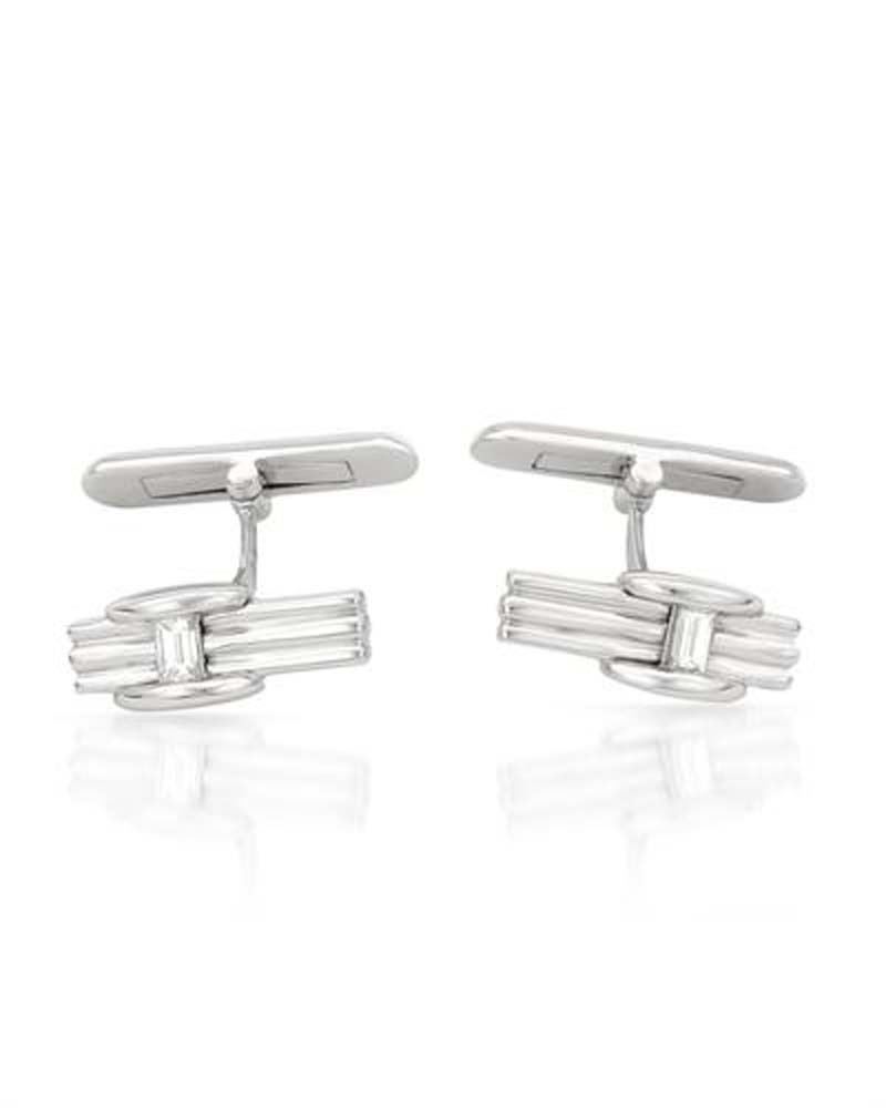 One 14KT White Gold 0.27ctw Diamond Cuff links. (2) Baguette Diamonds with a total weight of 0.27cts. Total weight of these cuff links are 7.61 grams.