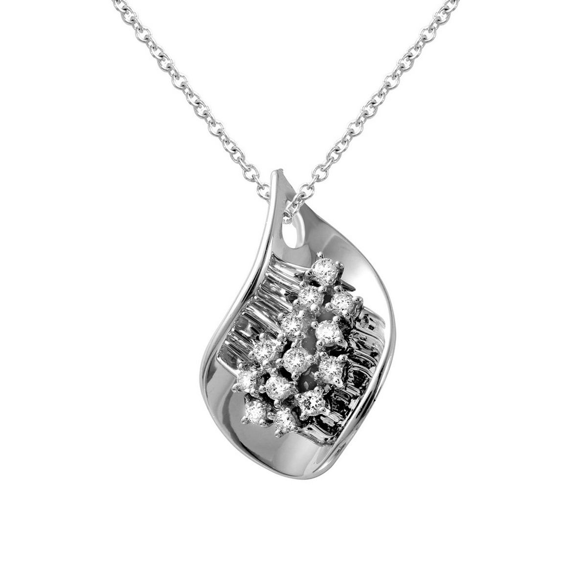 One 14KT White Gold 0.30ctw Diamond Pendant with Chain. (13) Diamonds with a total weight of 0.30cts. The total weight of this pendant with chain is 3.83 grams.