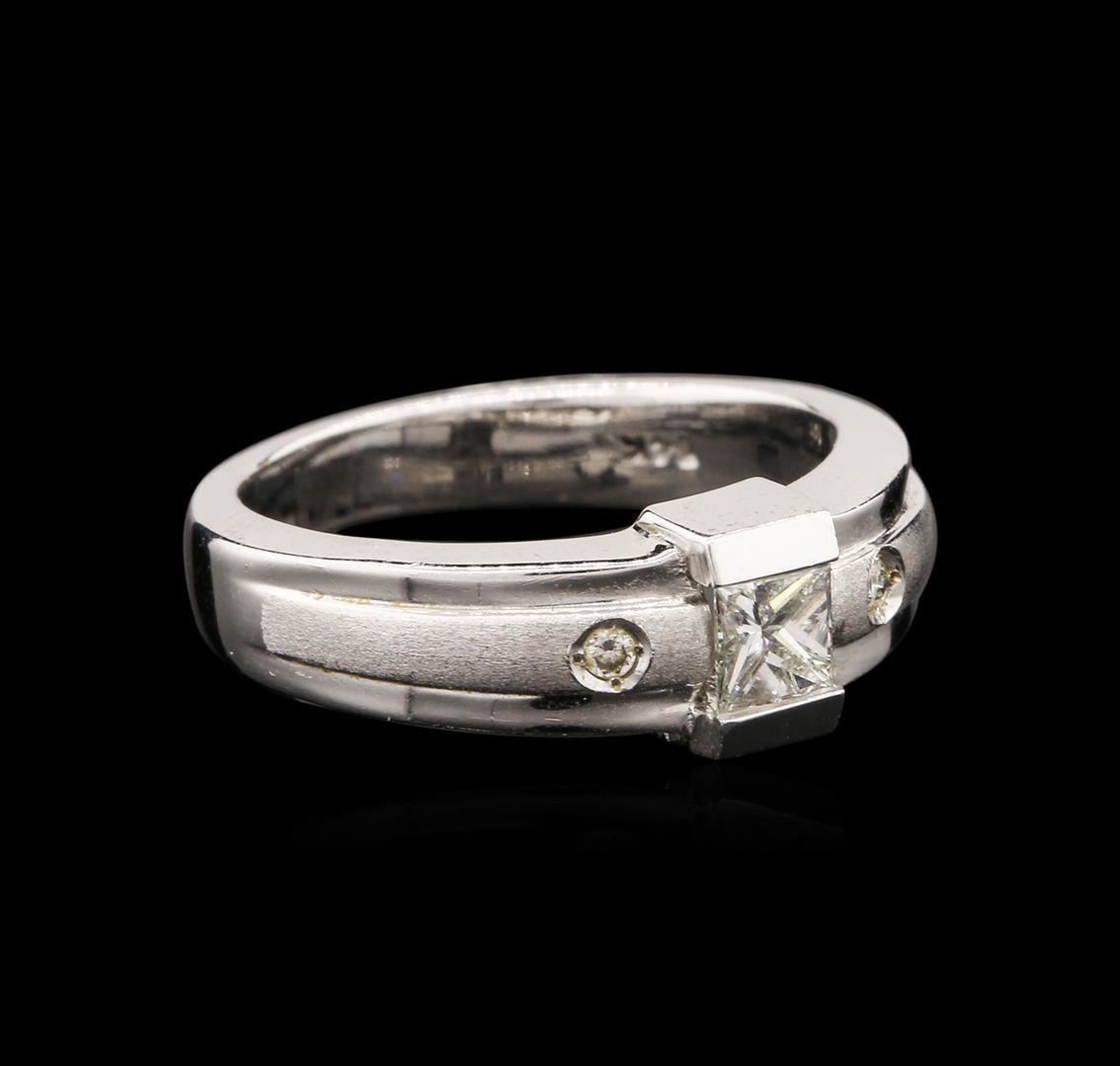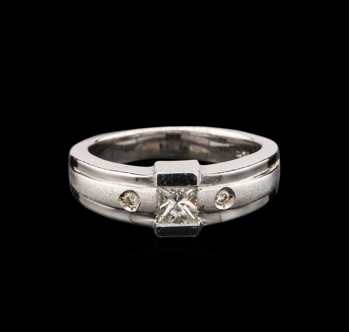 One ring featuring: 14KT white gold weighing 6.00 grams containing one bezel set princess cut diamond and two pave set round diamonds with a total weight of 0.31ct.