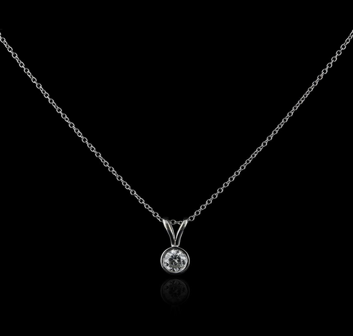 One solitaire pendant with chain featuring: 14KT white gold weighing 1.46 grams containing one diamond with a total weight of 0.31ct.
