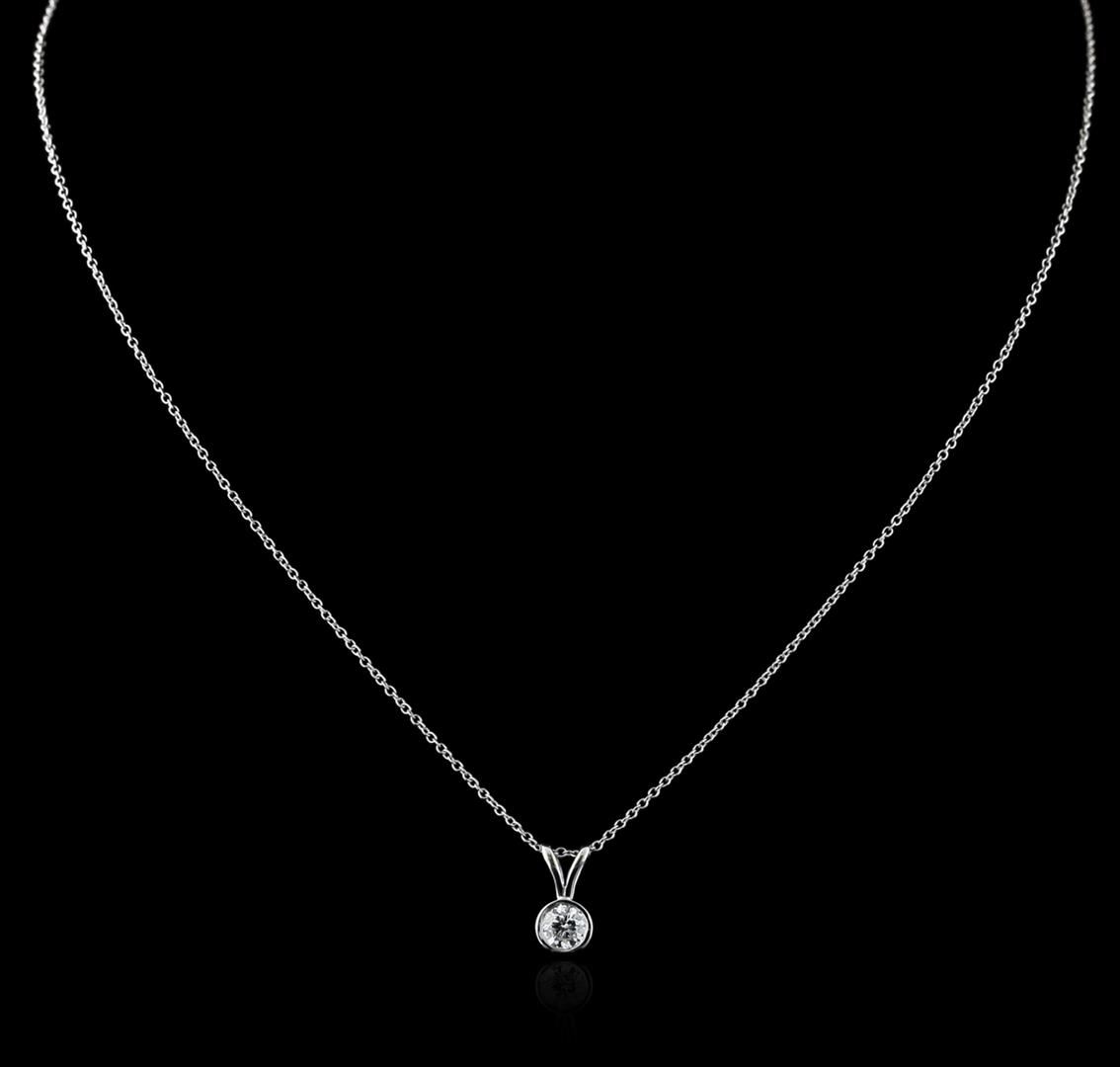 One solitaire pendant with chain featuring: 14KT white gold weighing 1.46 grams containing one diamond with a total weight of 0.31ct.