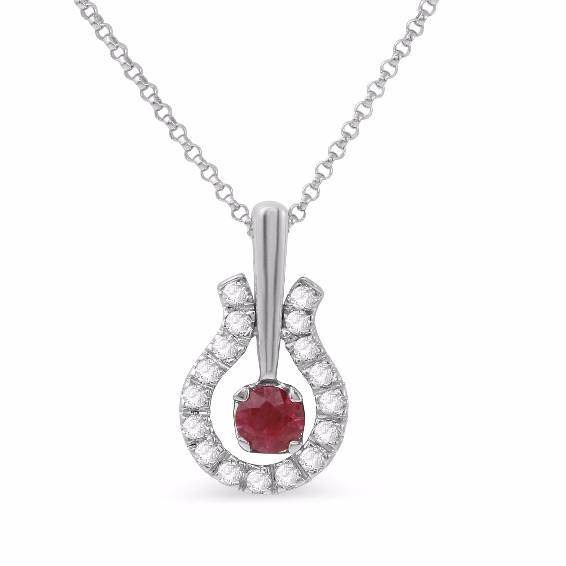 One 14KT White Gold 0.33ctw Ruby and Diamond Pendant with Chain. (1) Ruby with a total weight of 0.33cts. (17) Diamonds with a total weight of 0.26cts with a color of I and clarity of SI-1 to SI-2. Total weight of this pendant with chain is 3.62 grams.