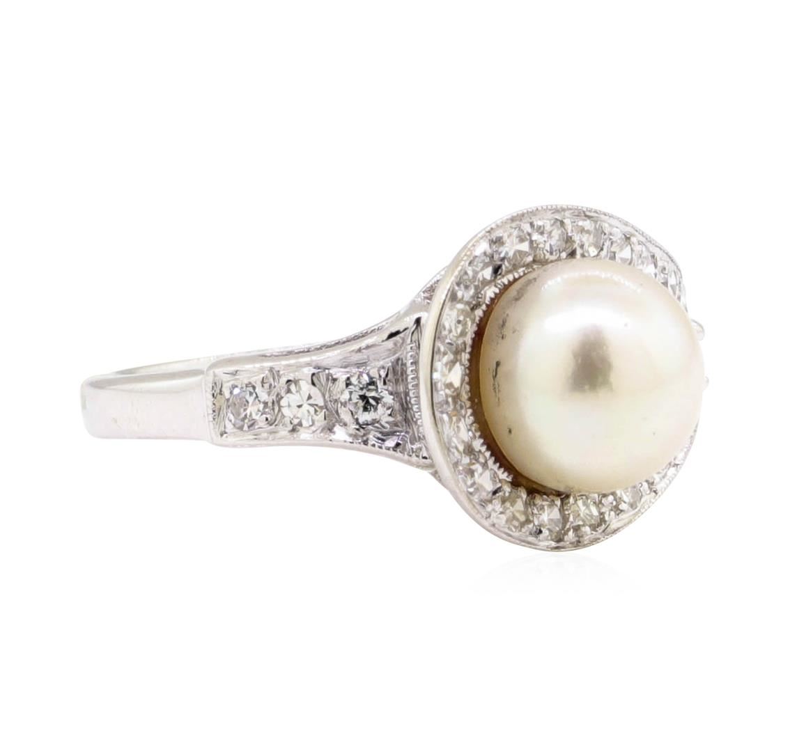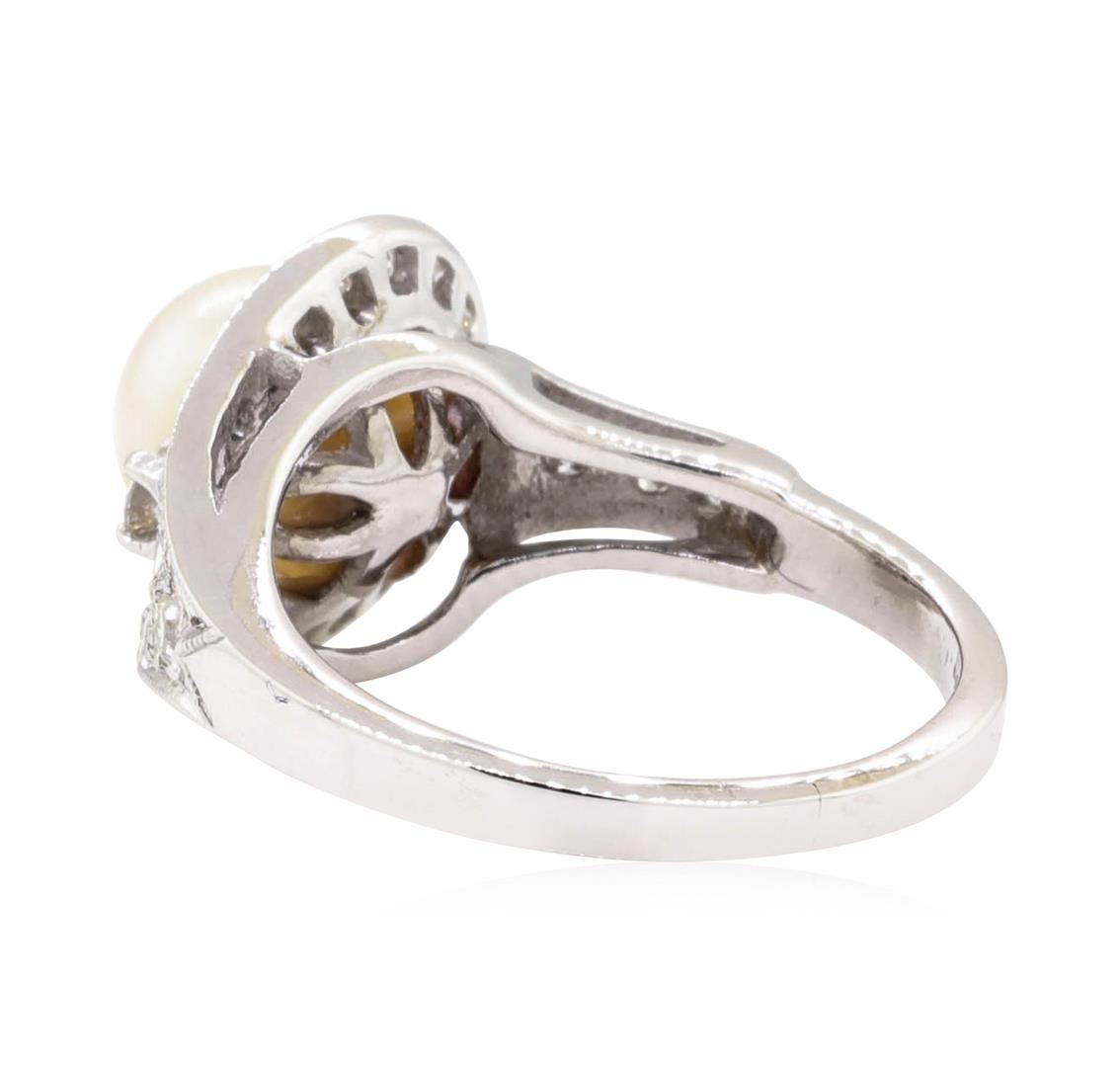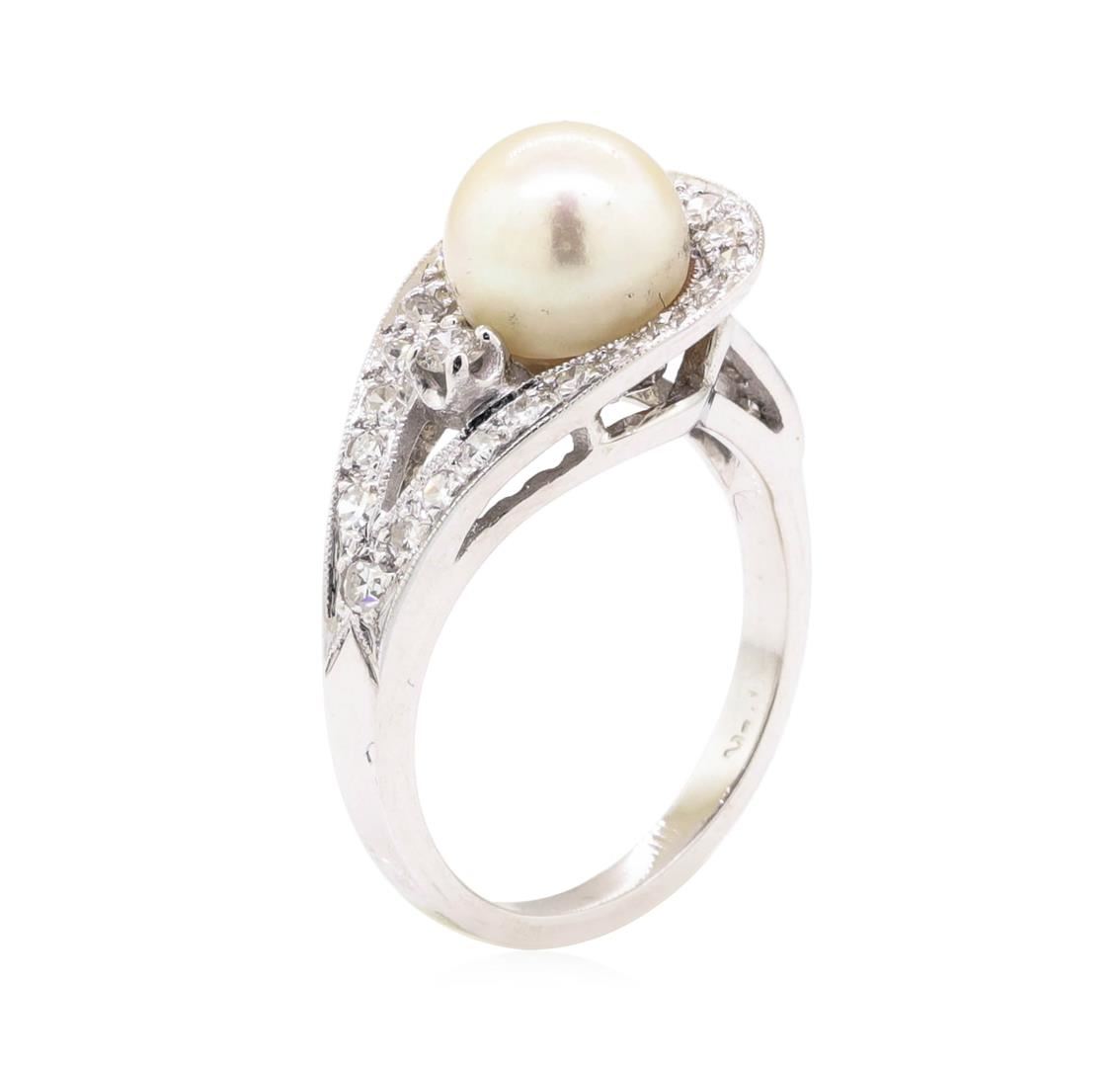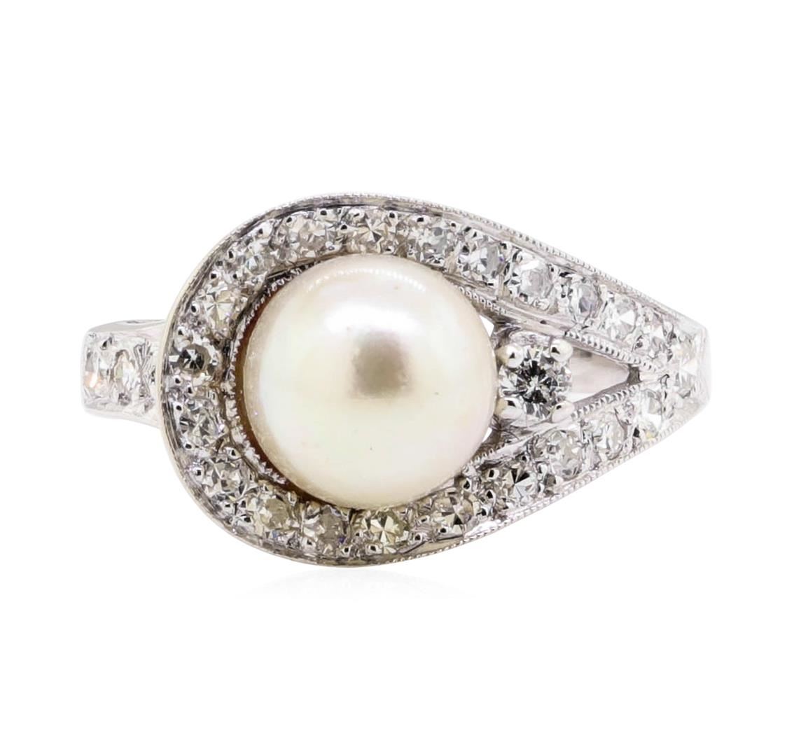 One ring featuring: 14KT white gold weighing 3.3 grams containing one pearl measuring 7.0mm and diamonds weighing 0.35ctw. The ring is a size 7.