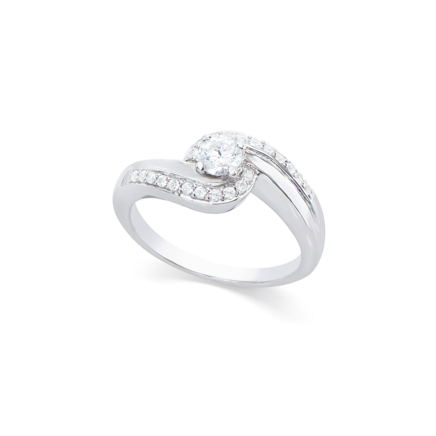 (1) round Diamond with a total weight of 0.20cts with a color of H-I and clarity of I1-I2. (22) round Diamonds with a total weight of 0.15cts with a color of H-I and clarity of I1-I2. Total weight of this ring is 3.2 grams. Ring size is 7.5.