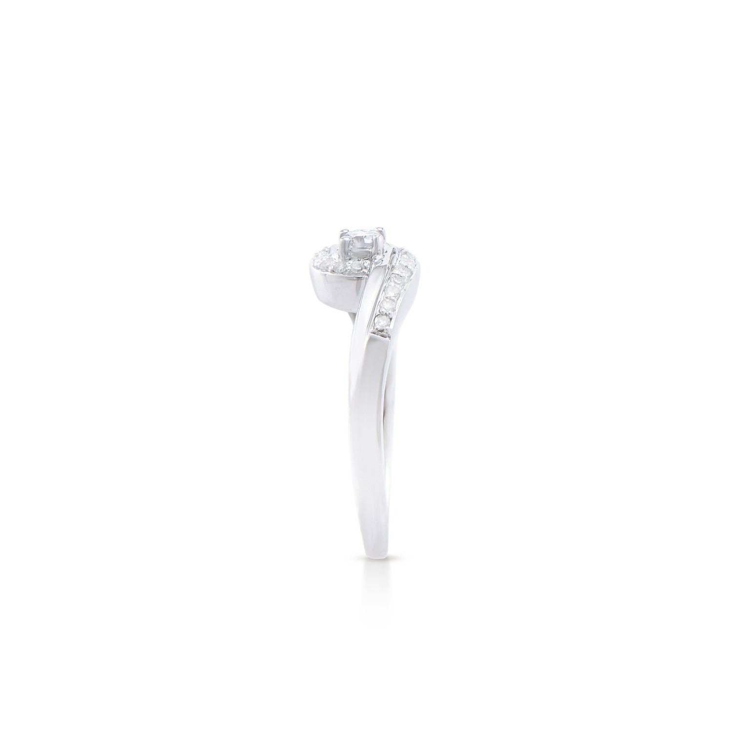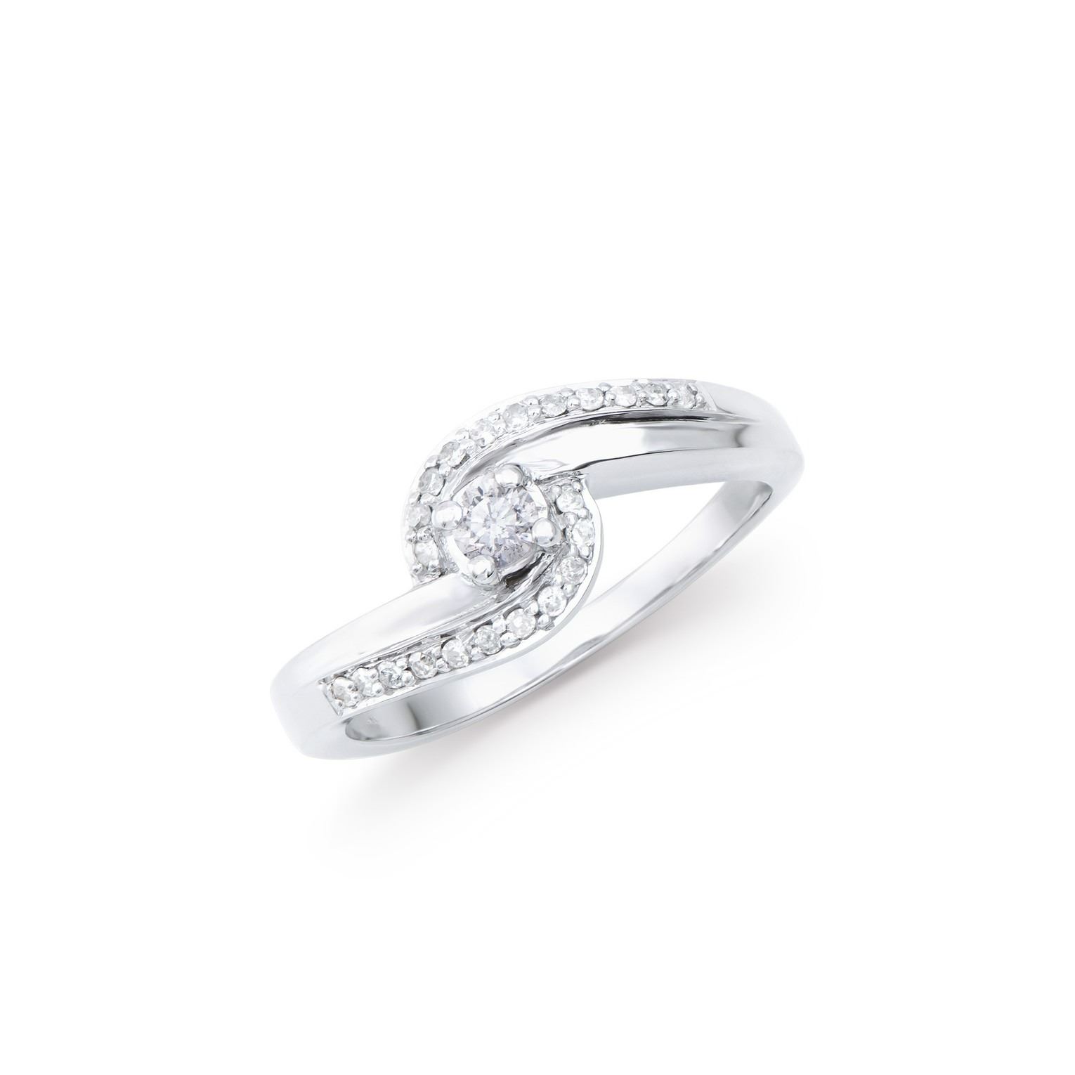 (1) round Diamond with a total weight of 0.20cts with a color of H-I and clarity of I1-I2. (22) round Diamonds with a total weight of 0.15cts with a color of H-I and clarity of I1-I2. Total weight of this ring is 3.2 grams. Ring size is 7.5.