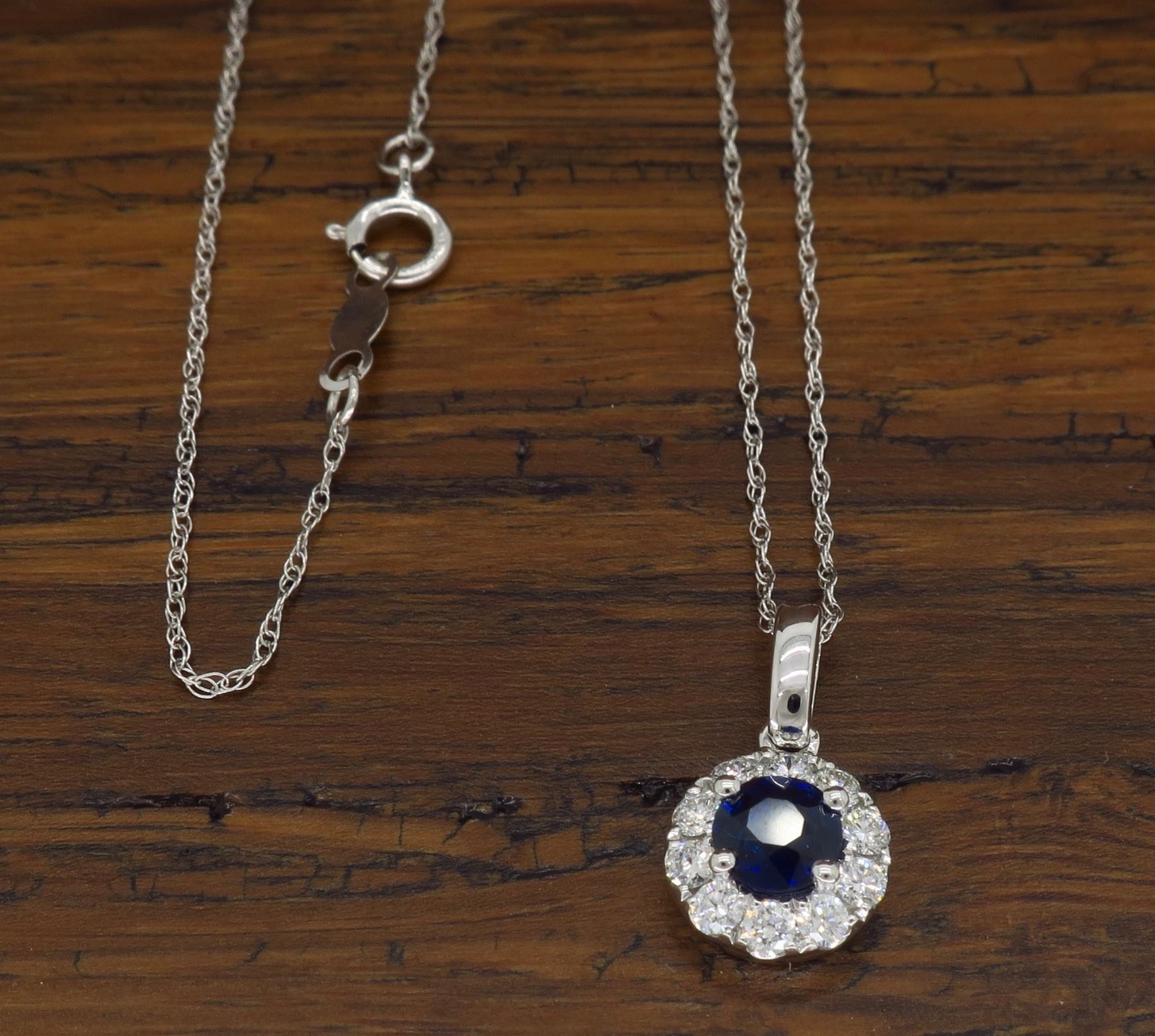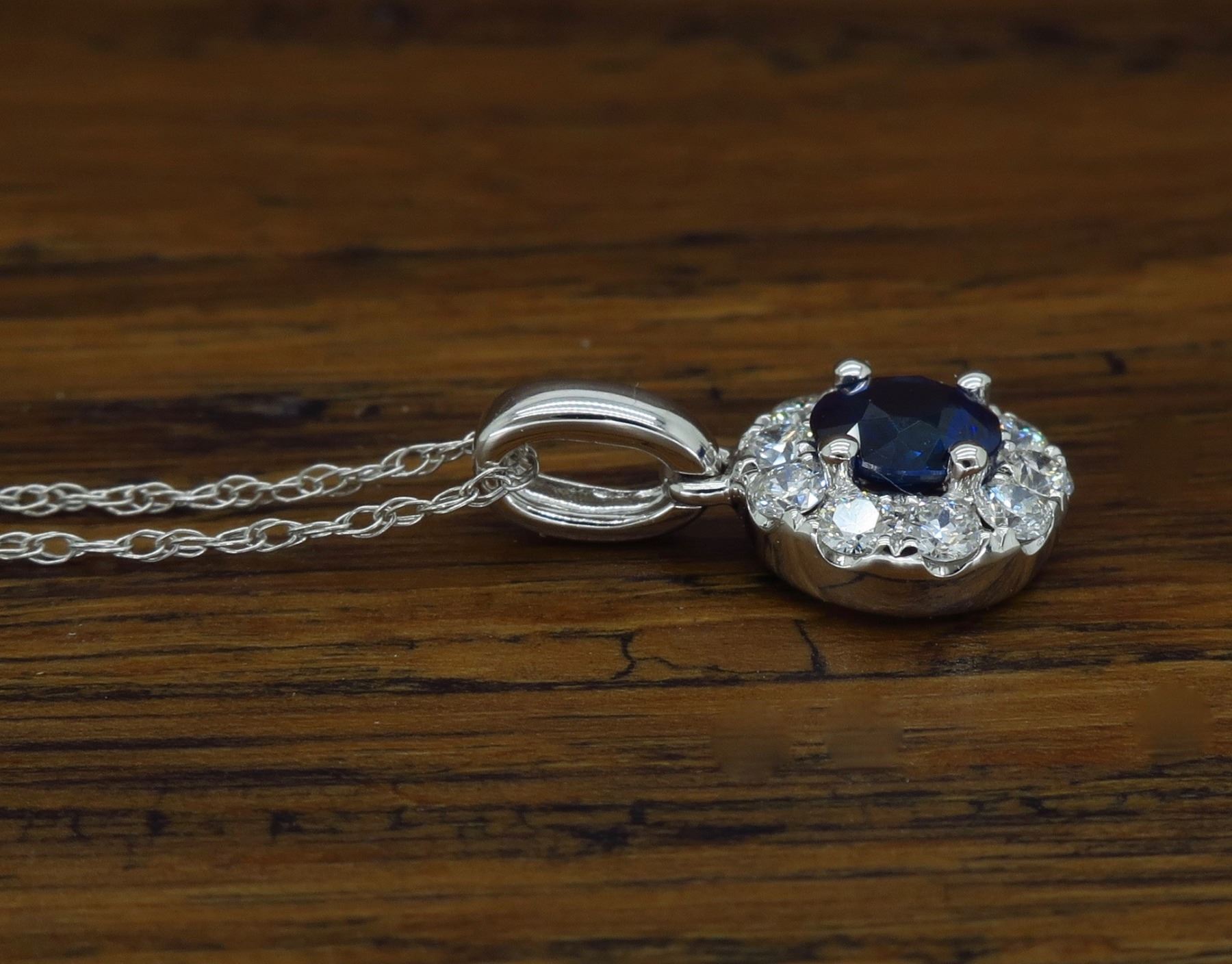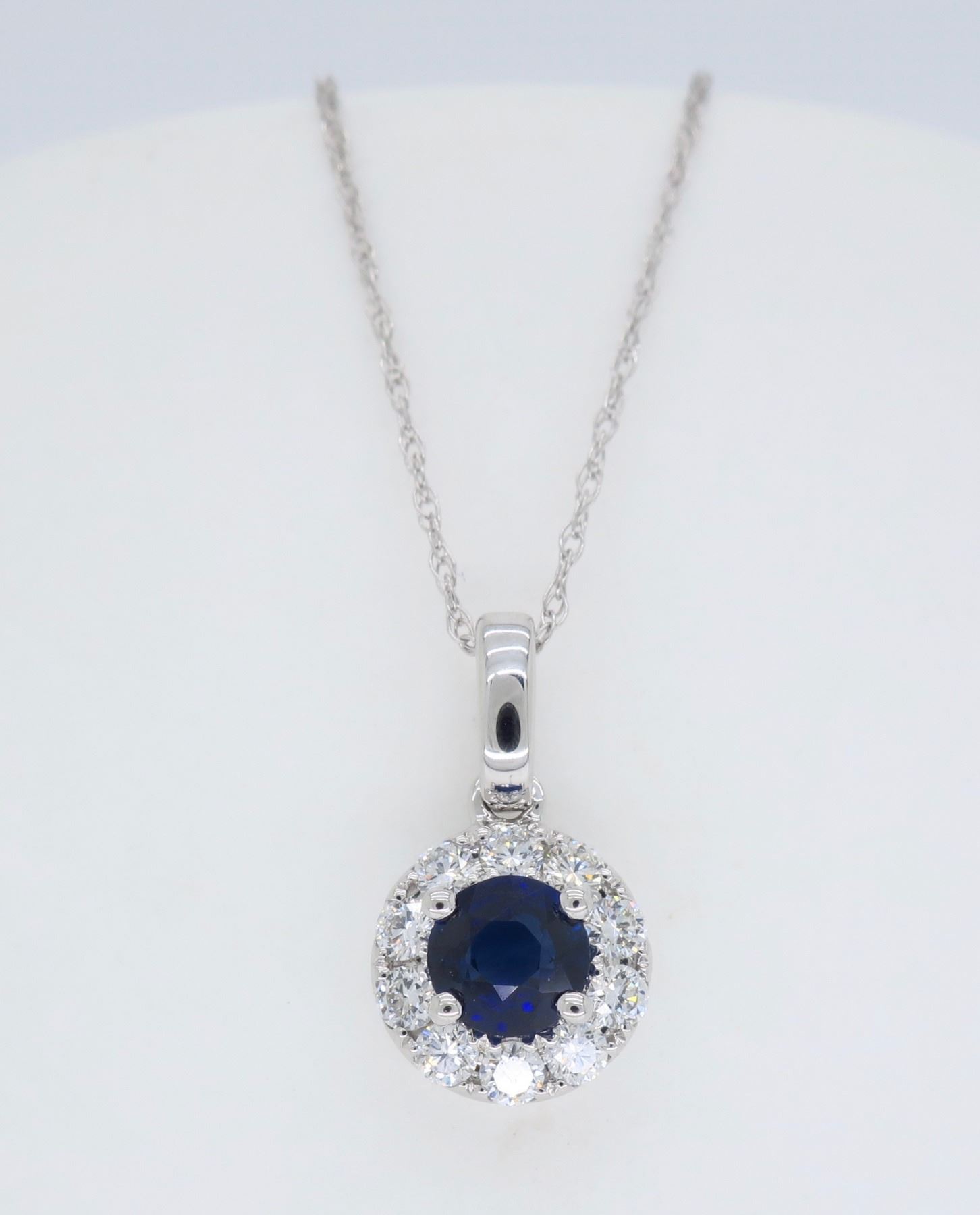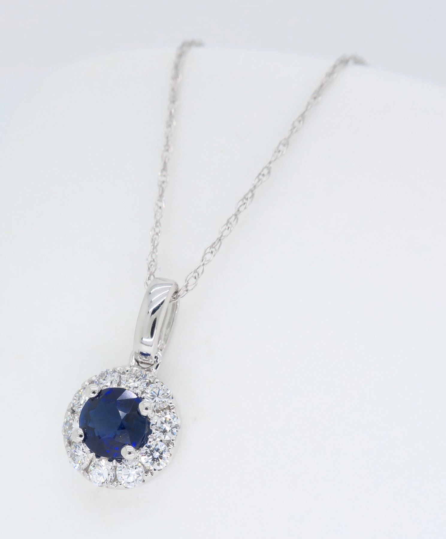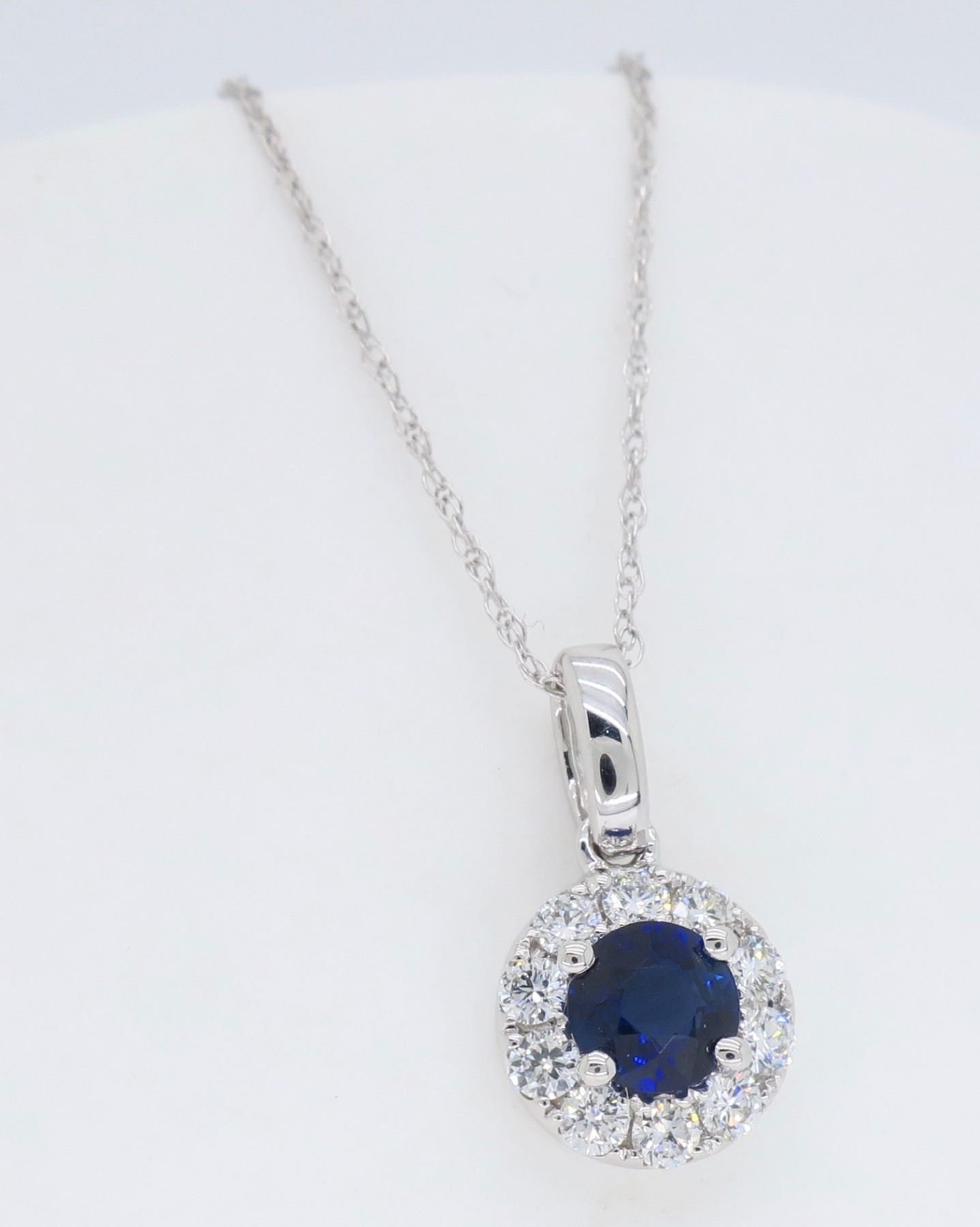 14KT White Gold 0.39ct Blue Sapphire and Diamond Pendant with Chain
