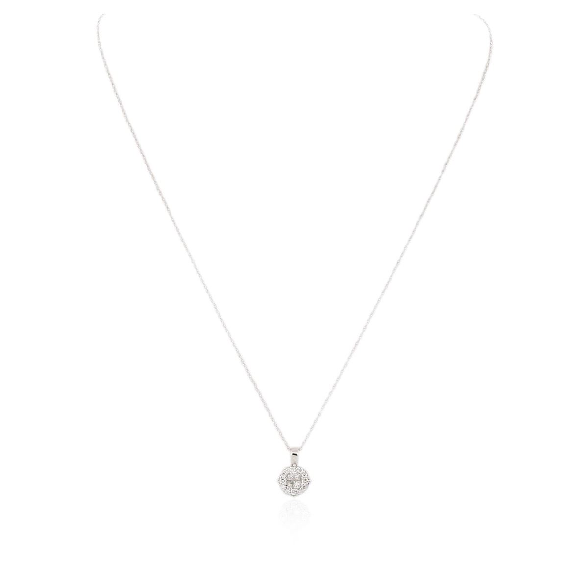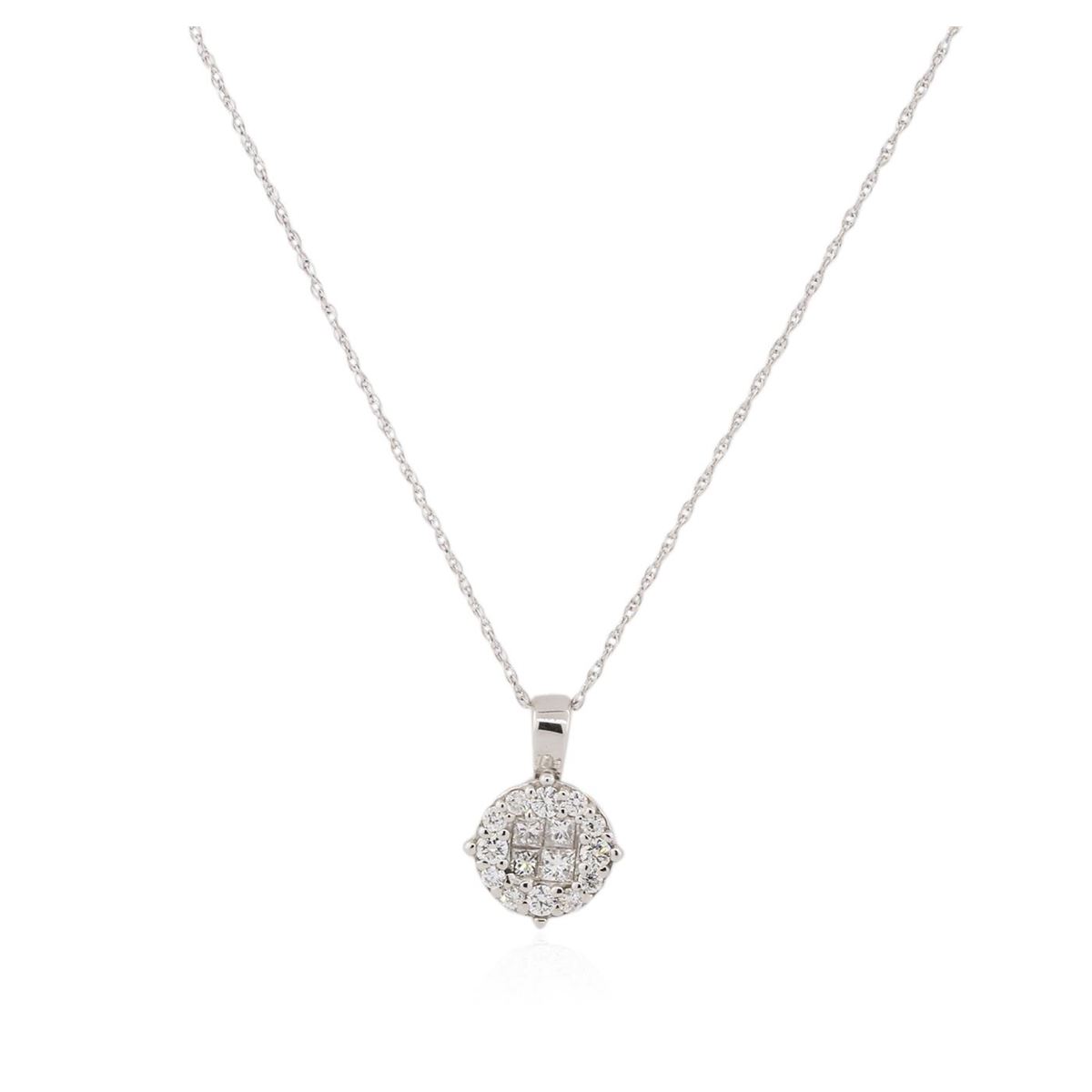 One pendant with chain featuring: 14KT white gold weighing 1.70 grams containing invisible set princess cut diamonds and pave set round diamonds for a total diamond weight of 0.40ct.