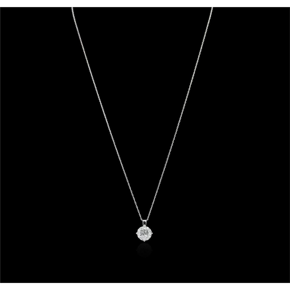 One pendant with chain featuring: 14KT white gold weighing 1.70 grams containing invisible set princess cut diamonds and pave set round diamonds for a total diamond weight of 0.40ct.