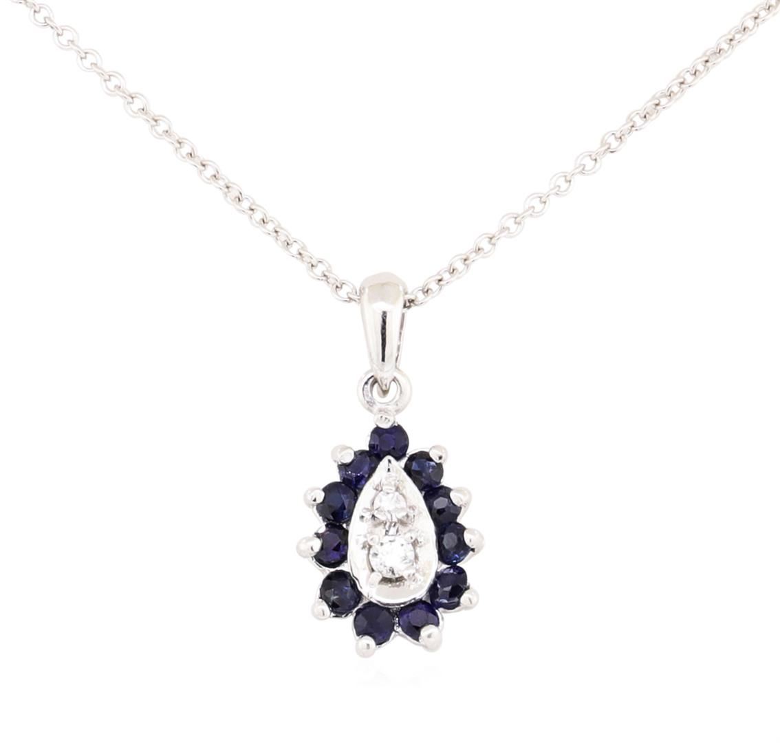 14KT White Gold 0.40 ctw Sapphire and Diamond Pendant with Chain
