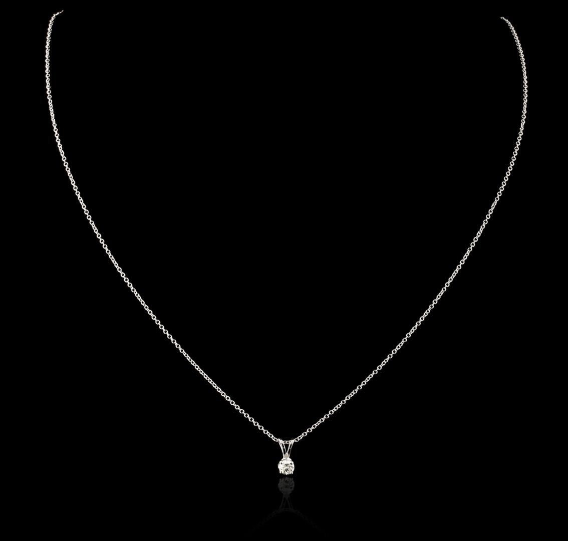 One pendant with chain featuring: 14KT white gold weighing 1.44 grams containing one prong set round diamond with a total weight of 0.40ct.