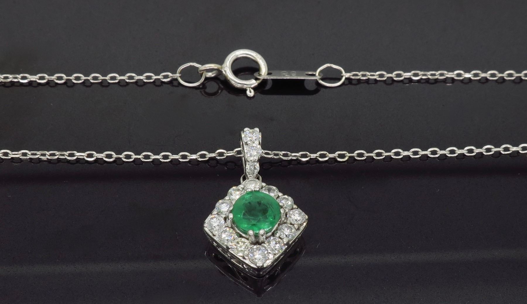 14KT White Gold 0.40ct Emerald and Diamond Pendant with Chain