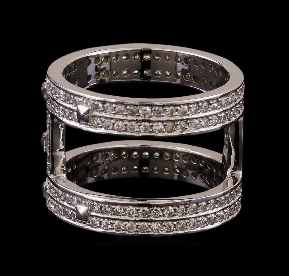 One electronically tested 14KT white gold ladies cast diamond ring with a bright polish finish. Identified with markings of "14K". Condition is new. Containing: One Hundred Sixteen prong set round brilliant cut diamonds, measuring 1.00 - 1.00 x 0.60mm (depth est.) approximate total weight of 116 Stones = 0.42ct. Clarity: I-1 to I-2. Color: I - J. All diamonds are graded in the mounting, unless otherwise stated. Total Weight of Diamonds 0.42ct. Total Weight of Ring 7.90 grams. GGL Appraised.