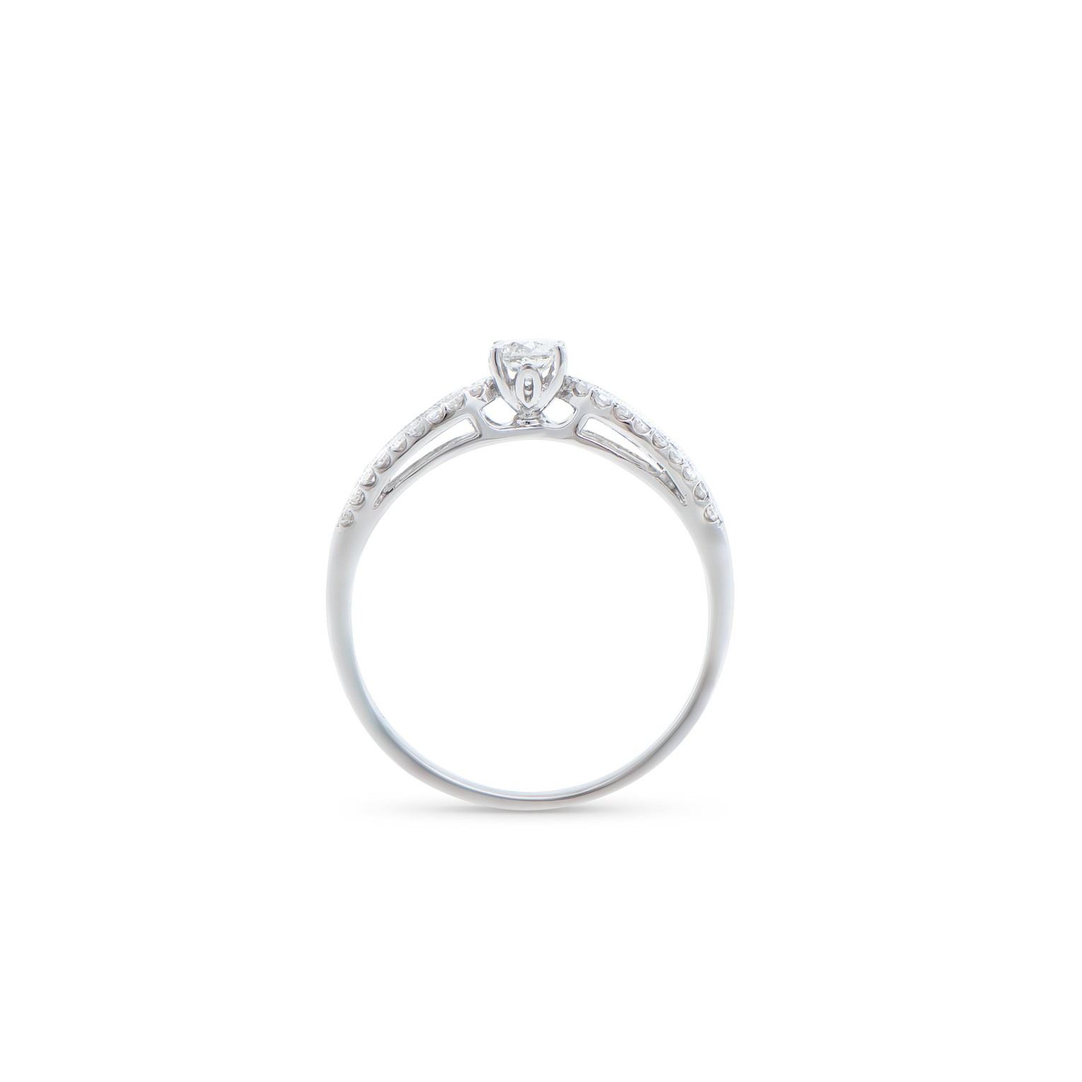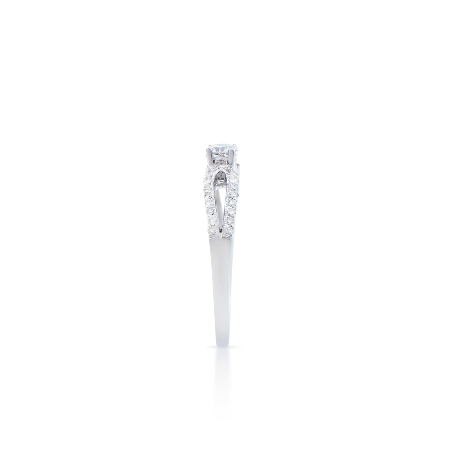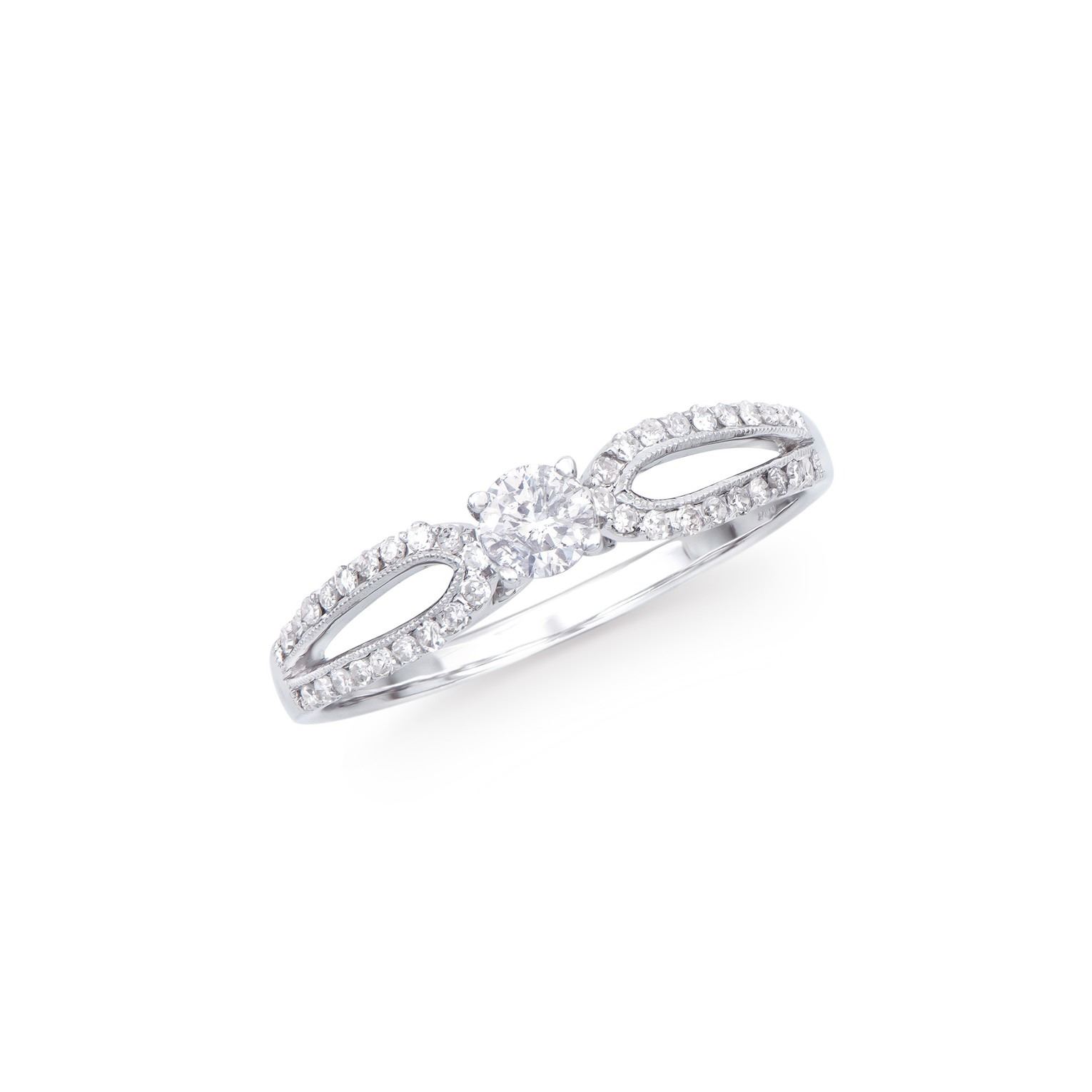 (1) round Diamond with a total weight of 0.22cts with a color of H-I and clarity of I1-I2. (38) round Diamonds with a total weight of 0.21cts with a color of H-I and clarity of I1-I2. Total weight of this ring is 1.8 grams. Ring size is 7.5.