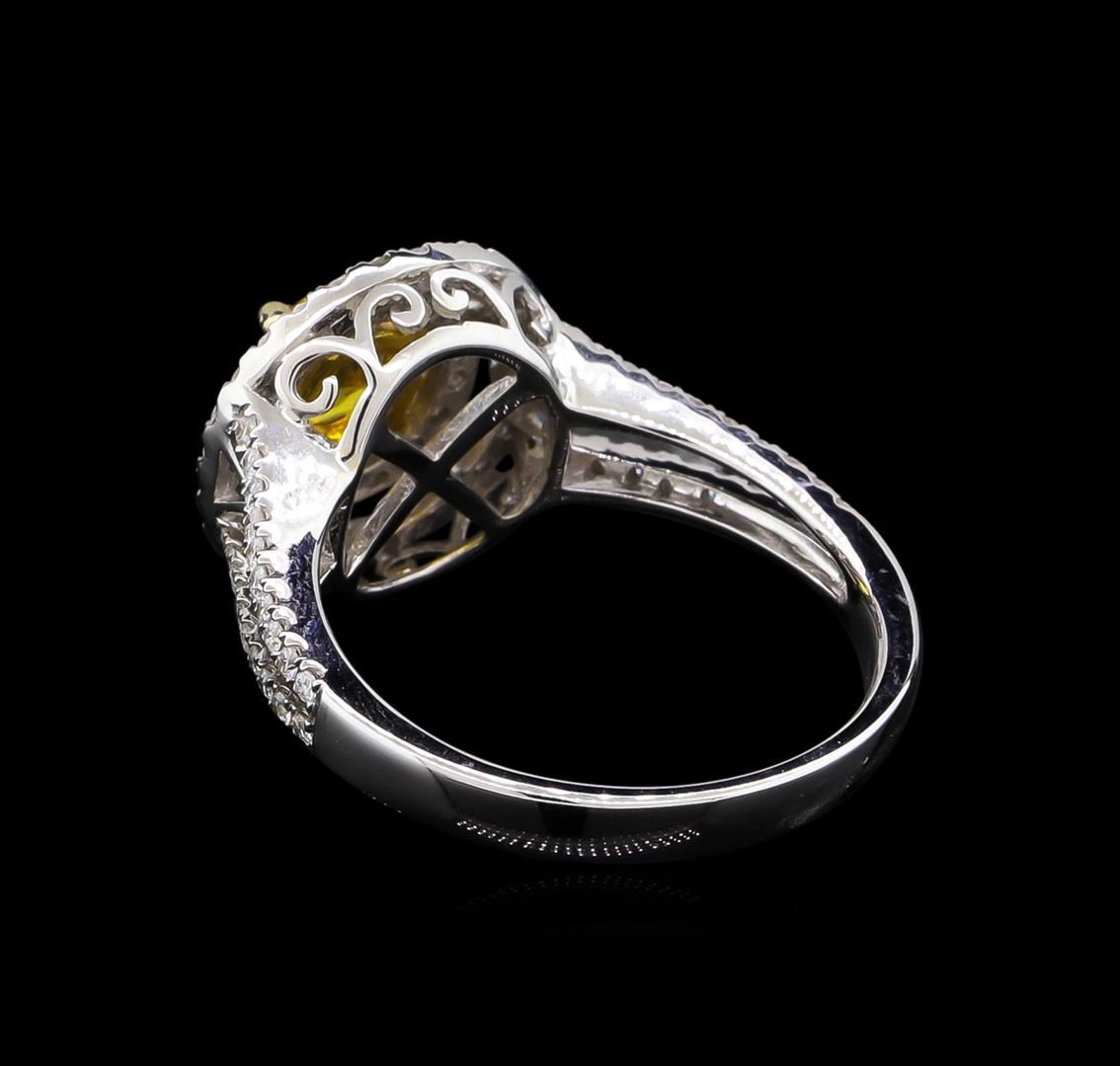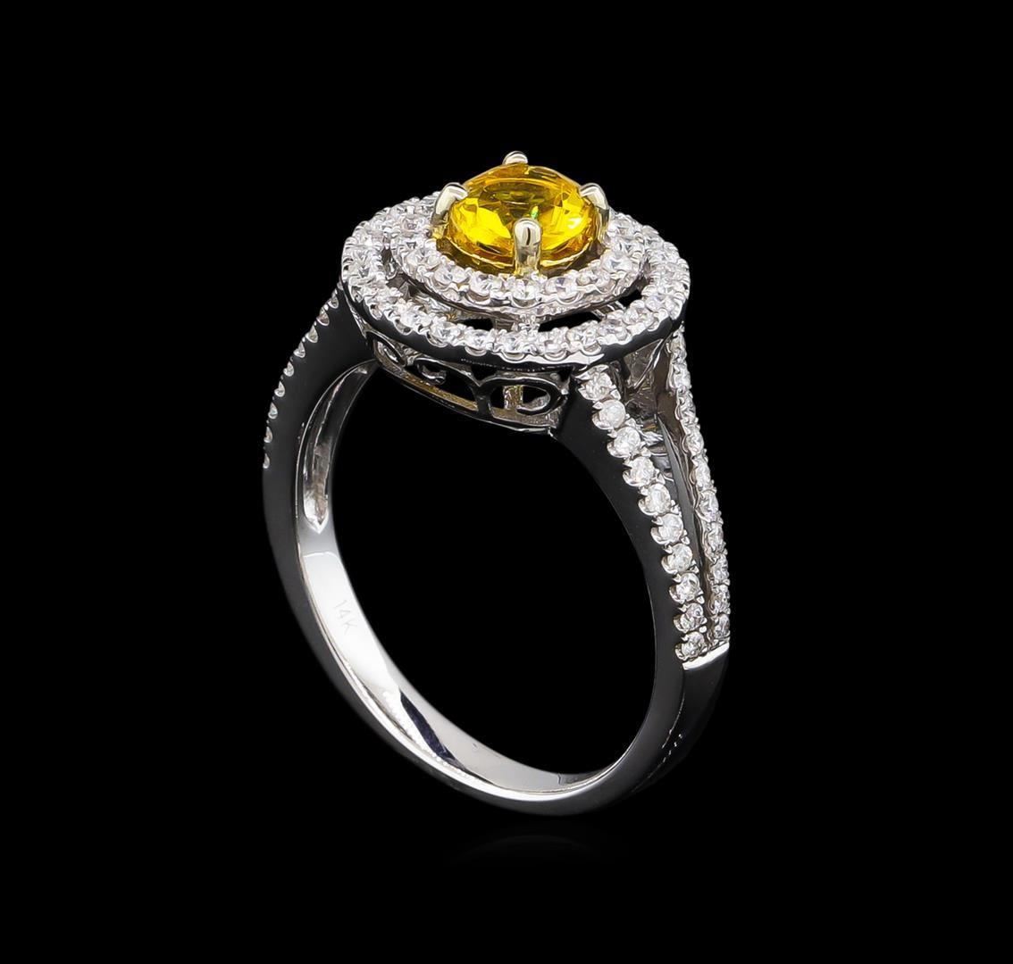One electronically tested 14KT white gold Ladies combination cast & assembled ring with a bright polish finish. Condition is new. Identified with markings of "14K". Containing: Eighty-Six prong set round brilliant cut diamonds, measuring 1.10 - 1.10 x 1.10mm (depth est.) approximate. Total Weight of 86 Stones = 0.60ct. Clarity: I-1 to I-2. Color: J, Cut is Good. One prong set round modified brilliant cut natural citrine quartz, measuring 5.00 - 5.00 x 3.25 mm, exact weight 0.44ct., clarity is eye clean, medium light, brownish, orangy yellow color, (GIA oY 4/3), cut is very good. Colored gemstones are presumed to have been subjected to commonly used and possible undetectable color/clarity enhancement processes. Total Weight of Colored Stones 0.44ct. Total Weight of Diamonds 0.60ct. Total Weight of Ring 4.20 grams. GGL Appraised at $3,580.00.