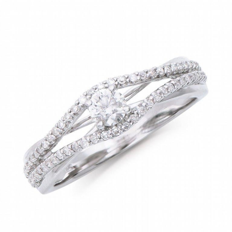 One 14KT White Gold 0.44ctw Diamond Ring. (1) round center Diamond measuring 3.8mm with a total weight of 0.20cts with a color of H-I and clarity of I1-I2. (64) round Diamonds with a total weight of 0.24cts with a color of H-I and clarity of I1-I2. Total weight of this ring is 3.51 grams. Ring size is 7.5.
