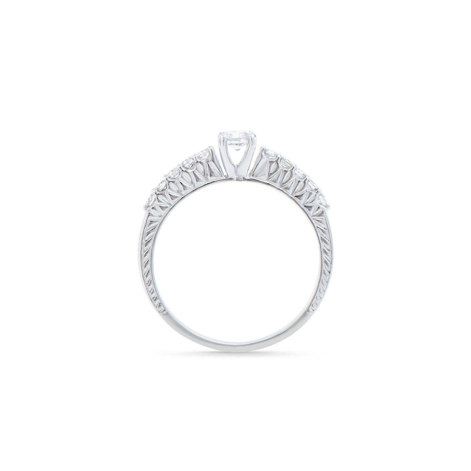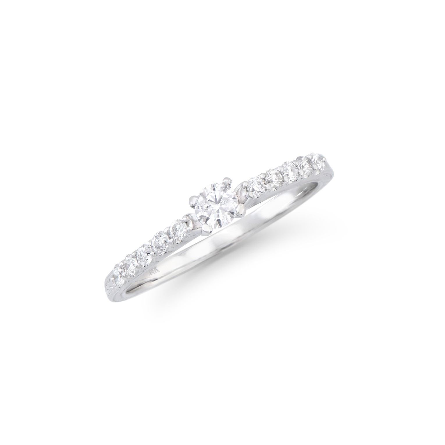 (1) round Diamond with a total weight of 0.22cts with a color of H-I and clarity of I1-I2. (10) round Diamonds with a total weight of 0.22cts with a color of H-I and clarity of I1-I2. Total weight of this ring is 2.2 grams. Ring size is 7.5.